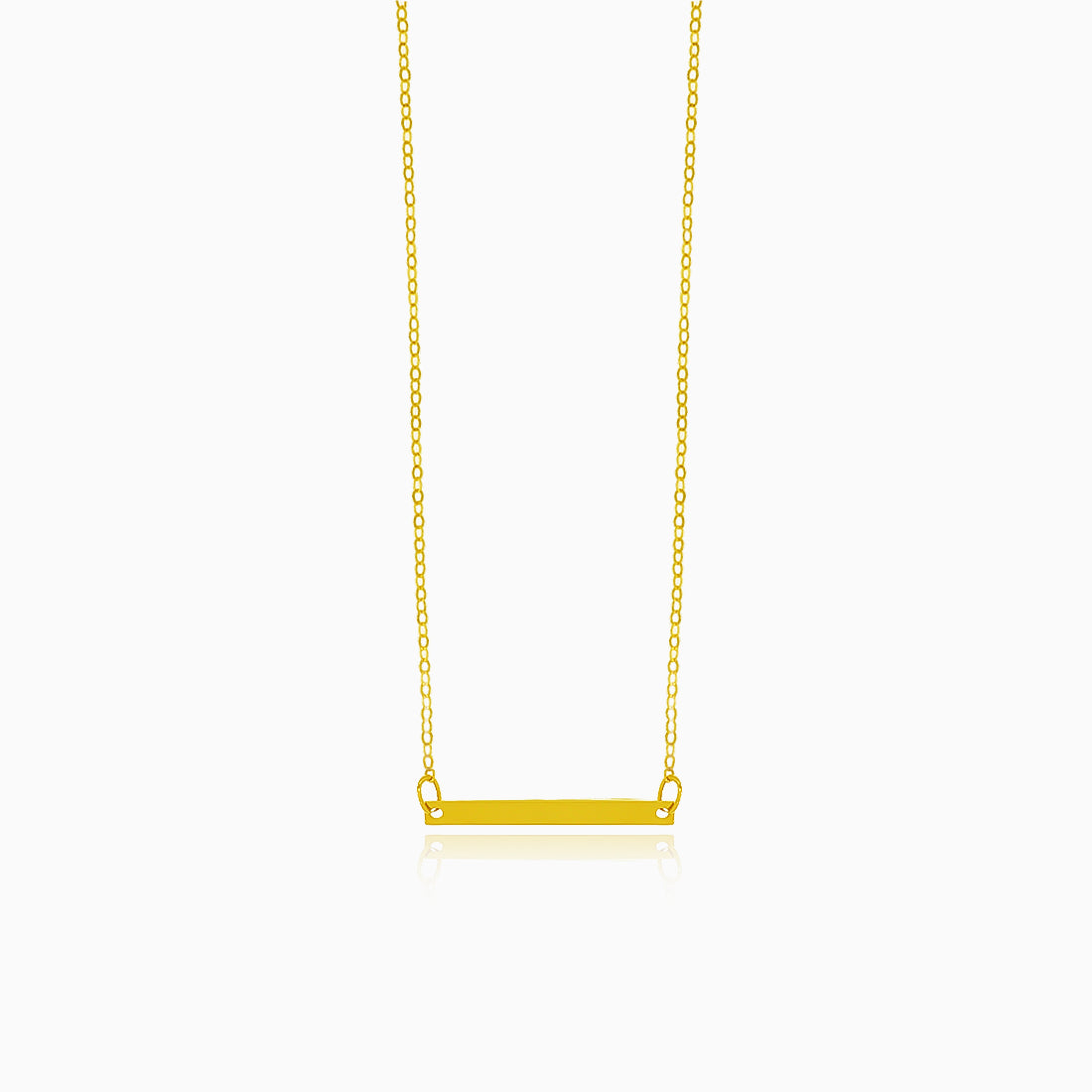 Tento jemný náhrdelník ze 14kt žlutého zlata je zdobený malou zlatou destičkou uprostřed a je zajištěn bezpečným karabinovým zapínáním.