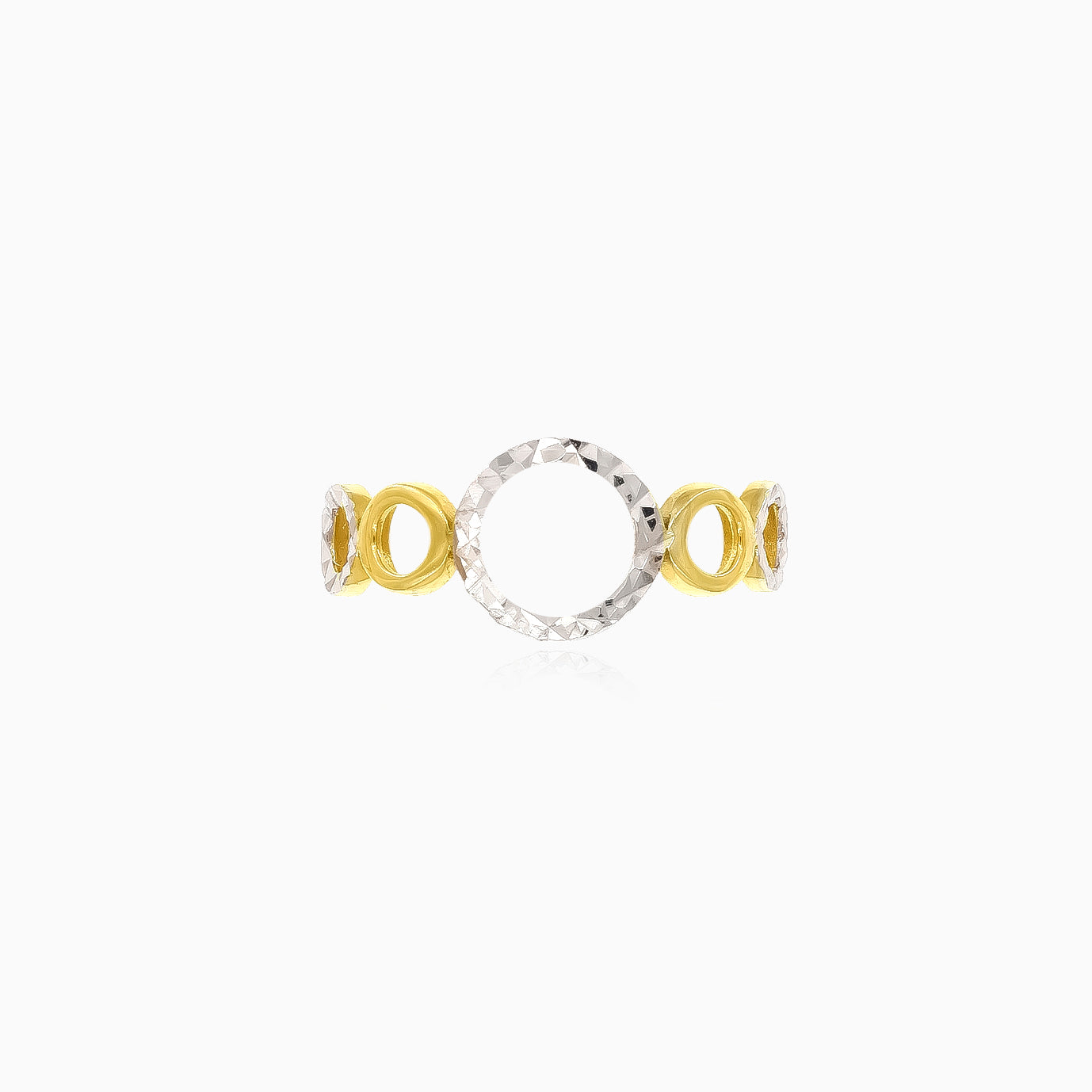 Vysoce leštěný dámský prsten ze 14kt žlutého a bílého zlata, který vyzařuje nadčasovou eleganci bez kamenů.