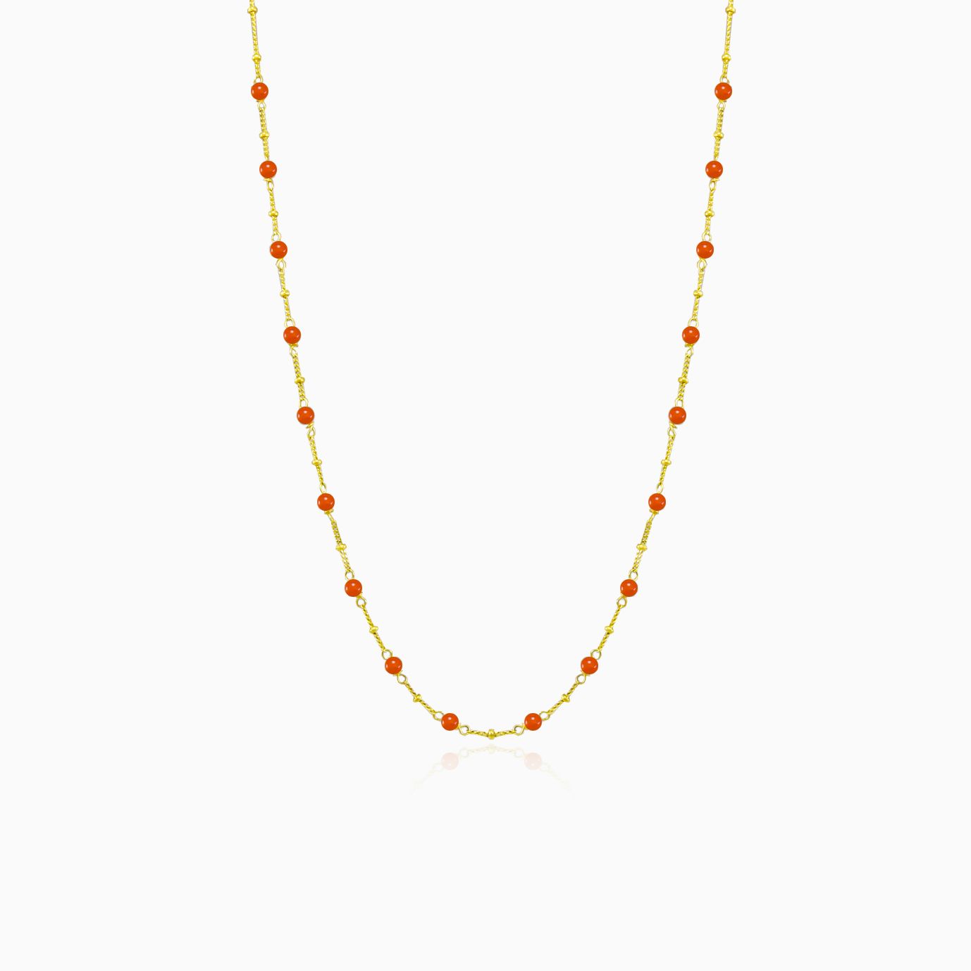 Minimalistický náhrdelník z 14-karátového žlutého zlata ozdobený 3mm červenými korálv.