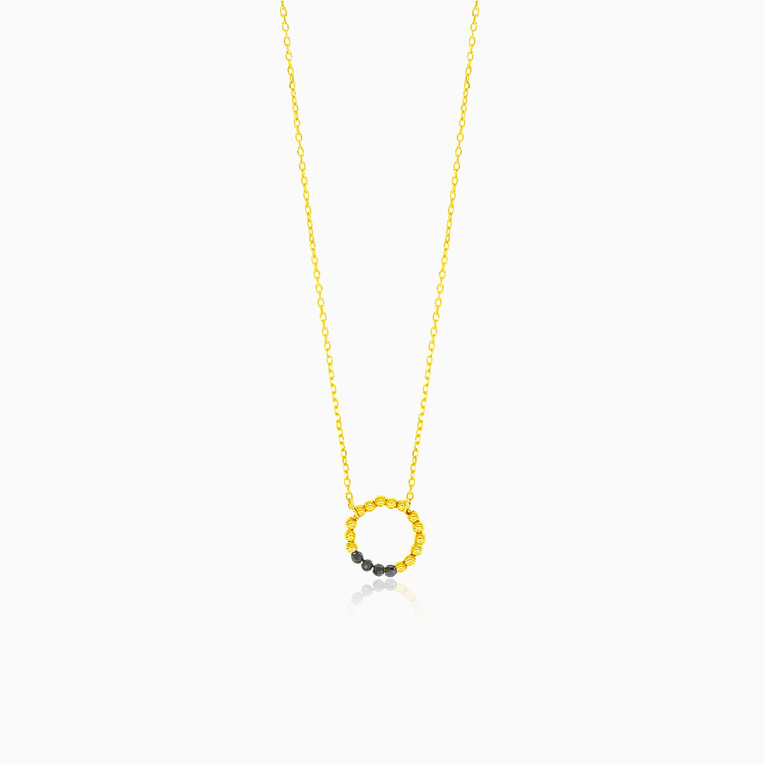 Tento unikátní náhrdelník je vyroben ze 14kt zlata a má kruh složený z malých kuliček, které jsou ze zlata a onyxu. Náhrdelník má zapínání na pružinovou sponu.