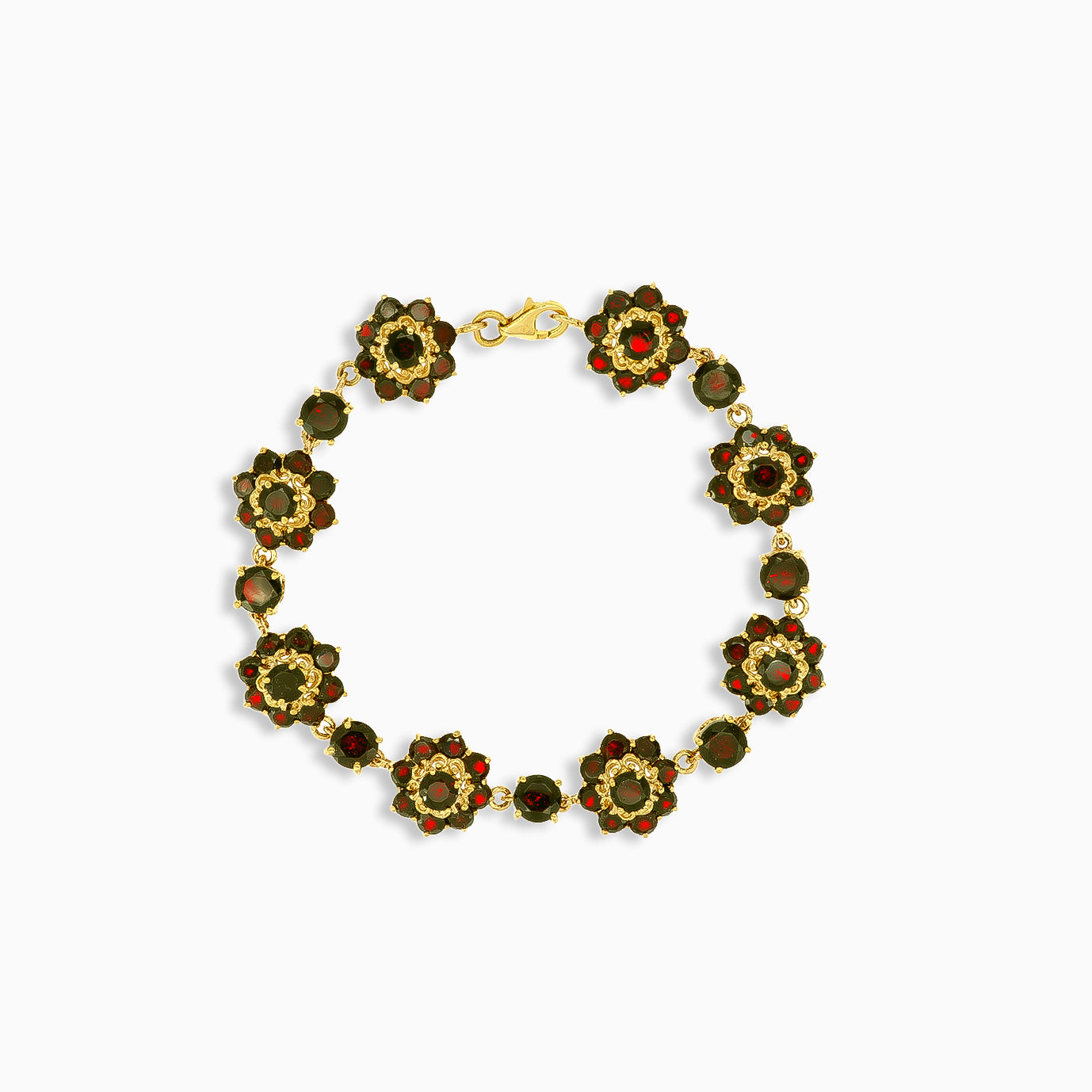 Granátový náramek s květy sedmikrásky ve zlatě