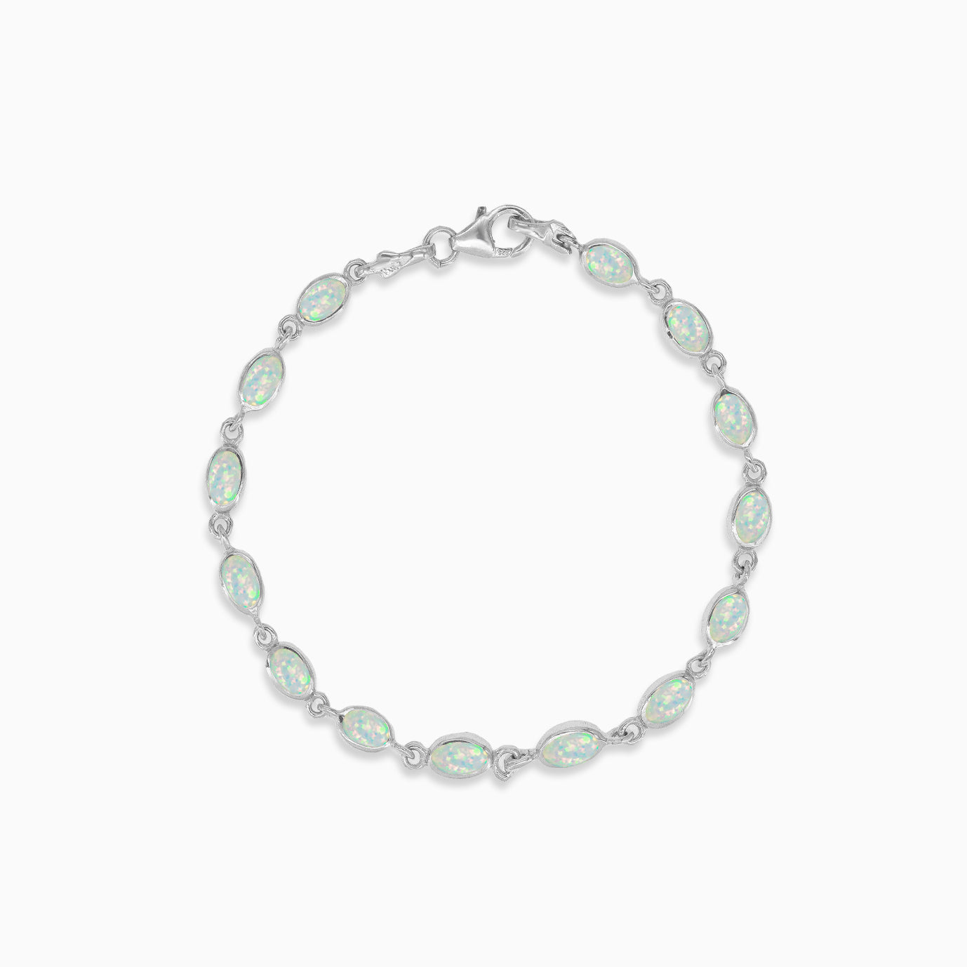 Tento elegantní stříbrný náramek se zářivými bílými opály oválného brusu zasazenými do rámečku. Jemný řetízek působí lehce a humří zapínání zajišťuje bezpečné a pohodlné nošení. Perfektně se hodí k tomu, aby dodal vašemu každodennímu stylu nádech sofistikovanosti a šarmu.