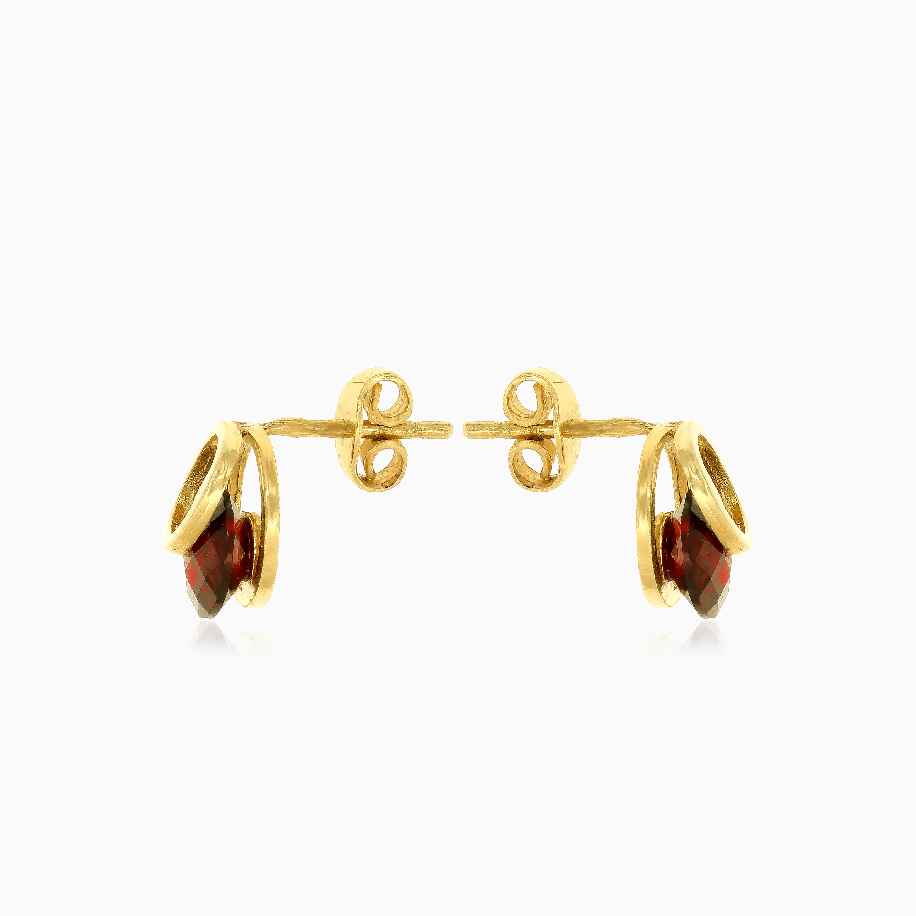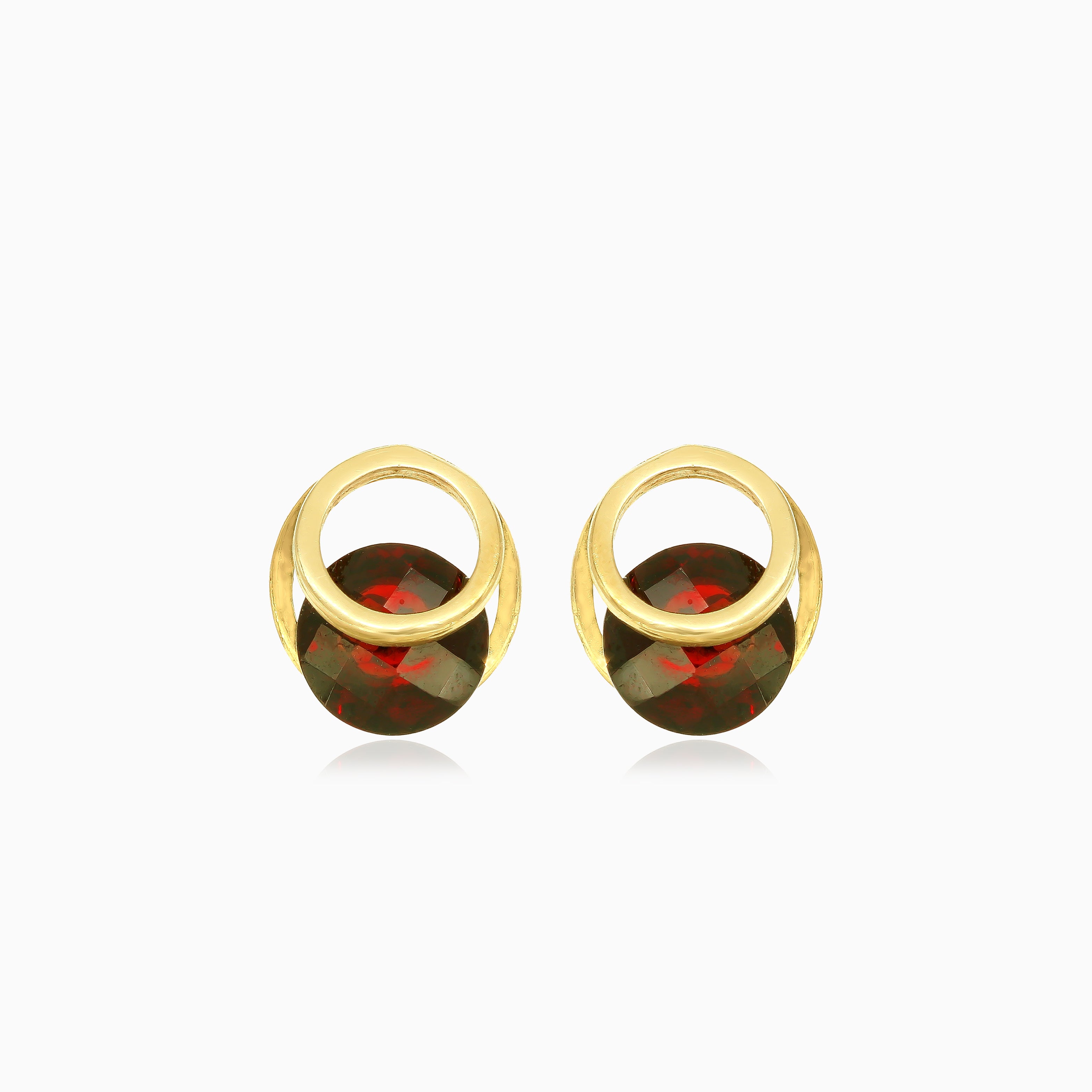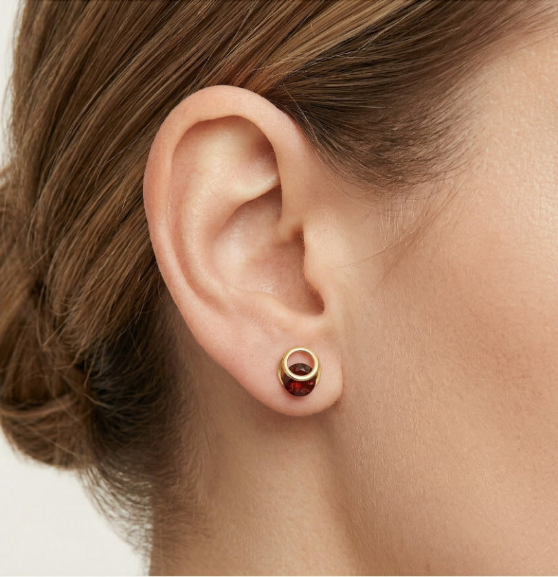 Zlaté náušnice s kulatým granátem s napínáním