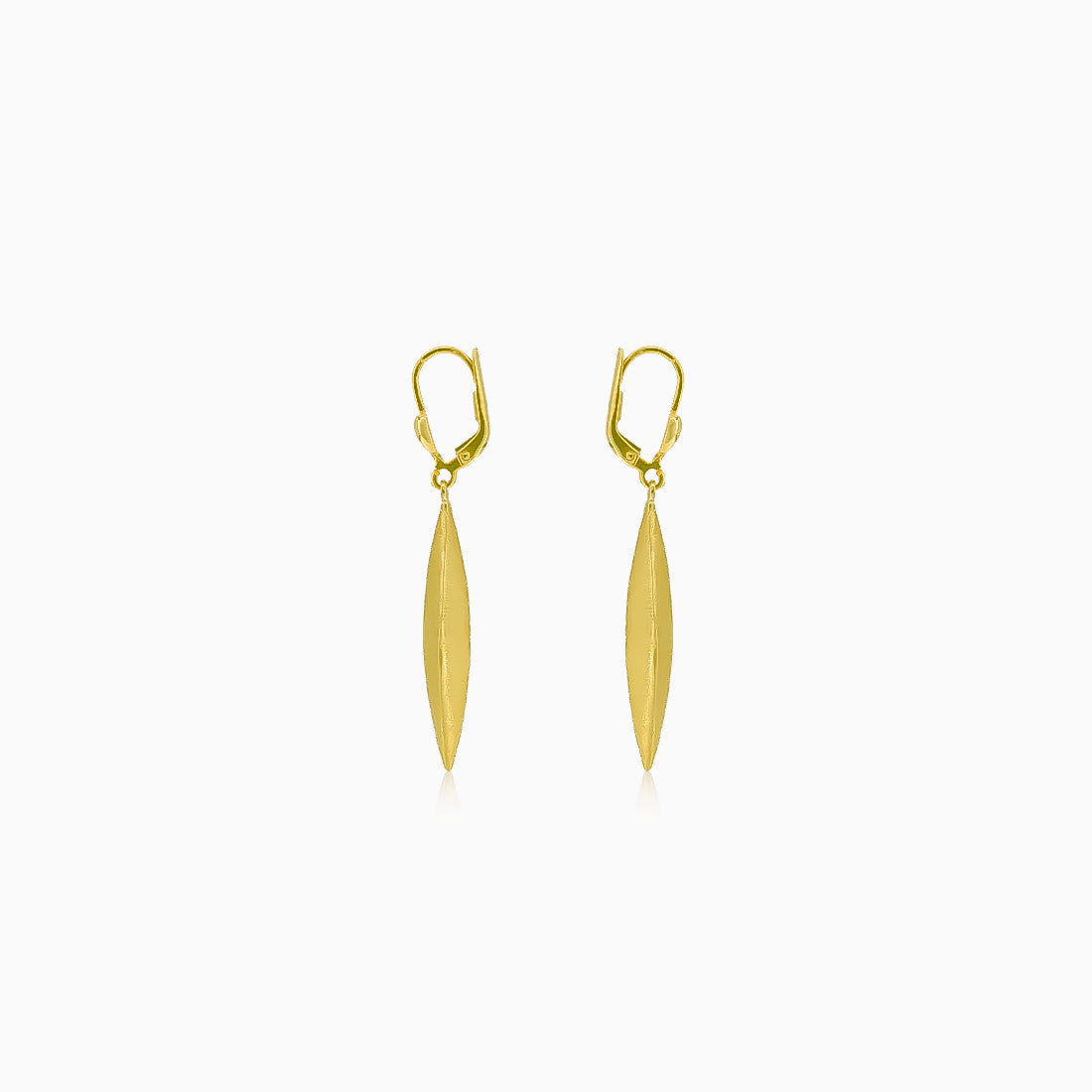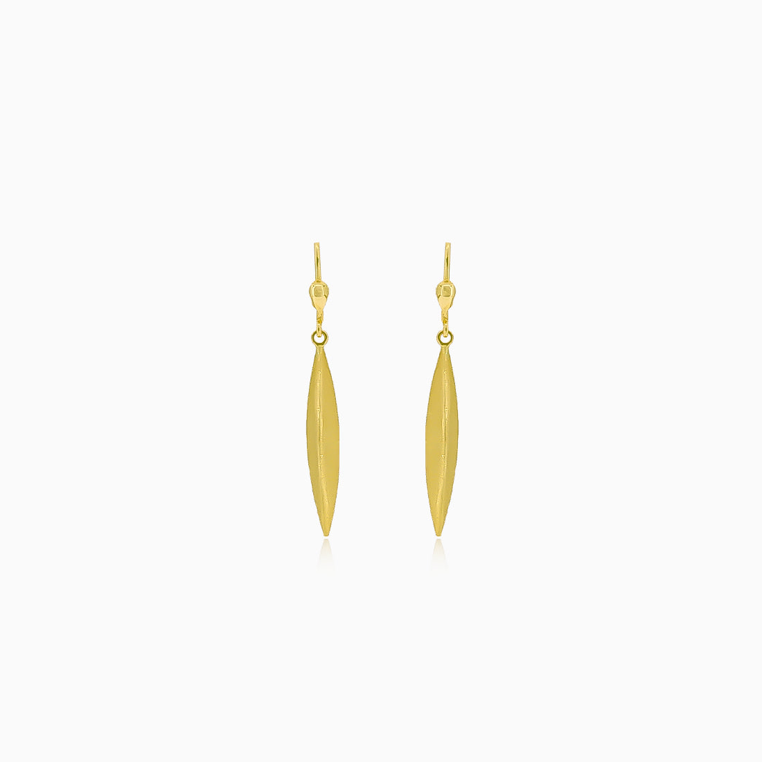 Tyto nádherné visací náušnice mají tvar markýzy a jsou vyrobené z 14 karátového žlutého zlata. Jejich povrch je zcela matný, což je krásně odlišuje od leštěných povrchů. Náušnice mají klasické zapínání. Tento krásný kousek bude skvělým doplňkem k vašemu outfitu.