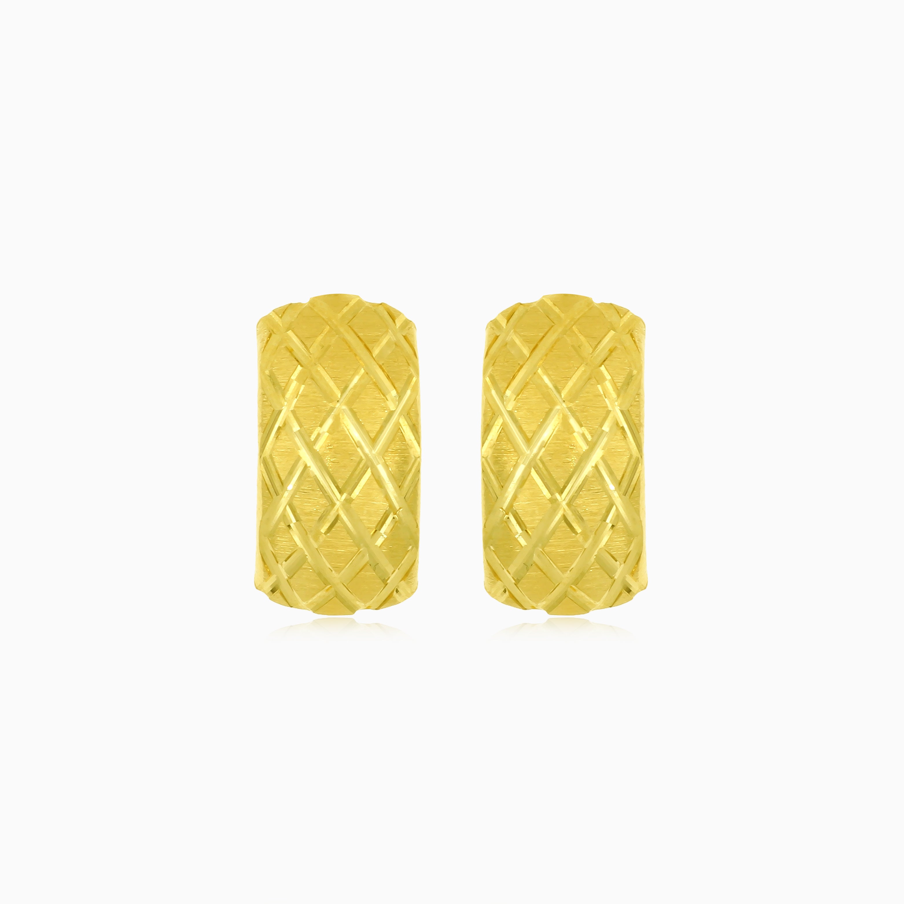 Objevte půvab těchto dámských náušnic ze 14kt žlutého zlata se zapínáním na puzetu, které představují kapkovitý styl a složité detaily bez kamenů.