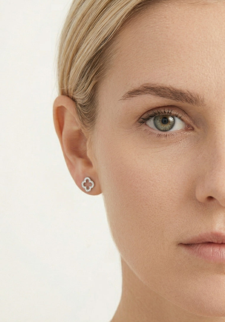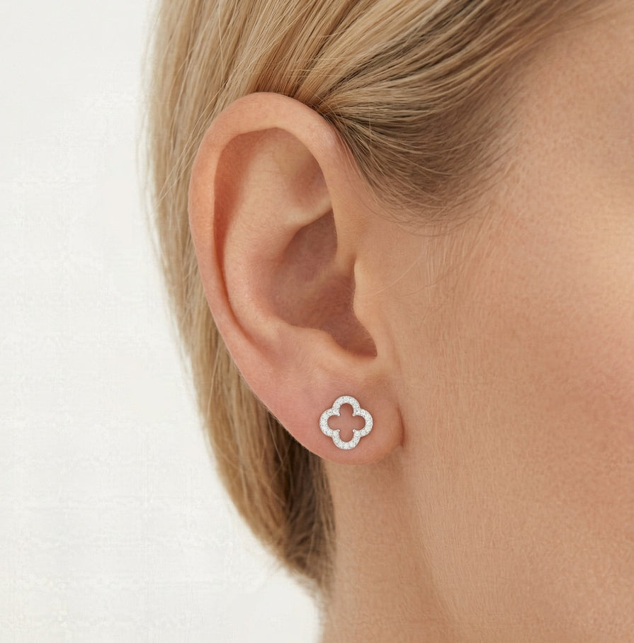 Dámské stříbrné náušnice ve tvaru čtyřlístku zdobené oslnivými kubickými zirkony v kulatém jemném stupňovitém výbrusu. Osazení puzetami umocňuje třpyt, zatímco puzetové zapínání zajišťuje pohodlí a bezpečnost. Dokonalá kombinace elegance a šarmu pro každou příležitost.