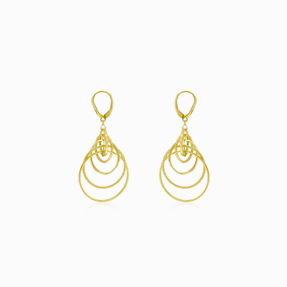 Zlaté visací náušnice s pěti otáčejícími se kruhy