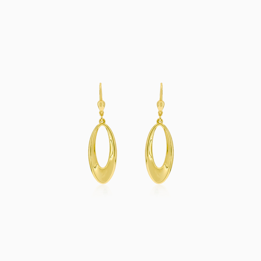 Tyto krásné visací náušnice jsou vyrobeny ze 14karátového žlutého zlata. Visací ovál se pyšní výrazným designem. Celý povrch náušnic je vysoce leštěný a nabízí zářivý povrch. Jsou vybaveny klasickým zapínáním, které zajišťuje pohodlné nošení.