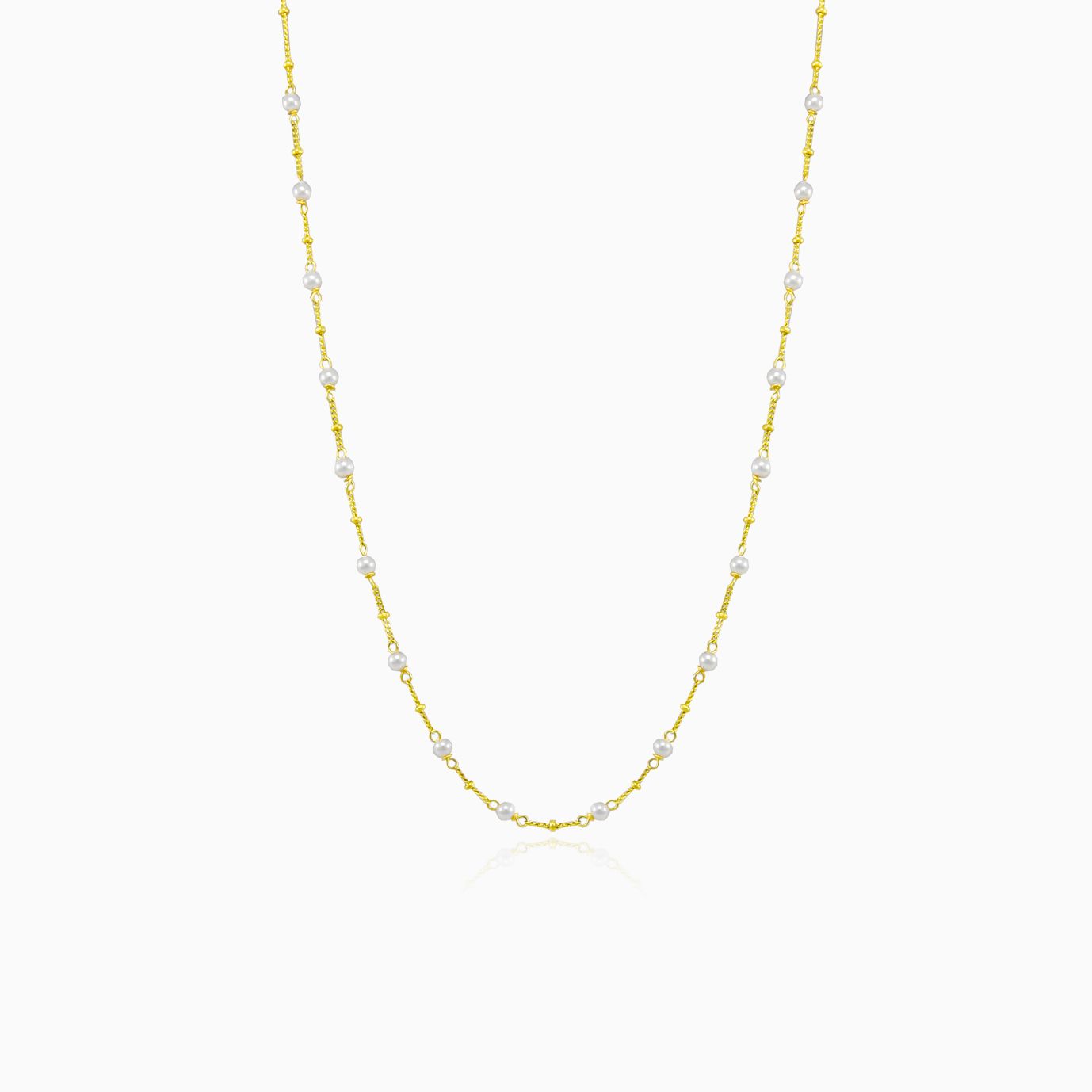Miminalistický náhrdelník z 14-karátového žlutého zlata s 3mm perlami.