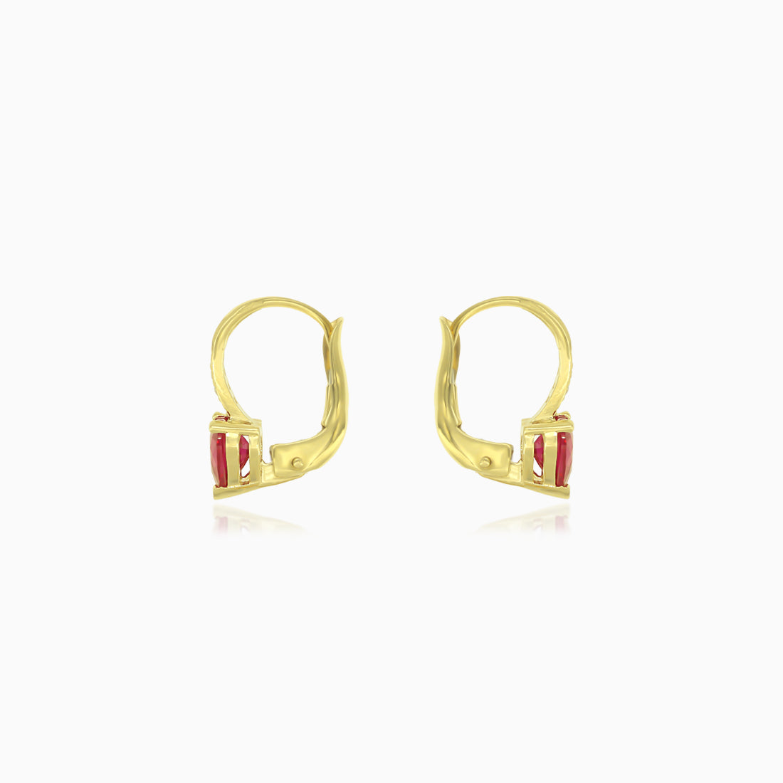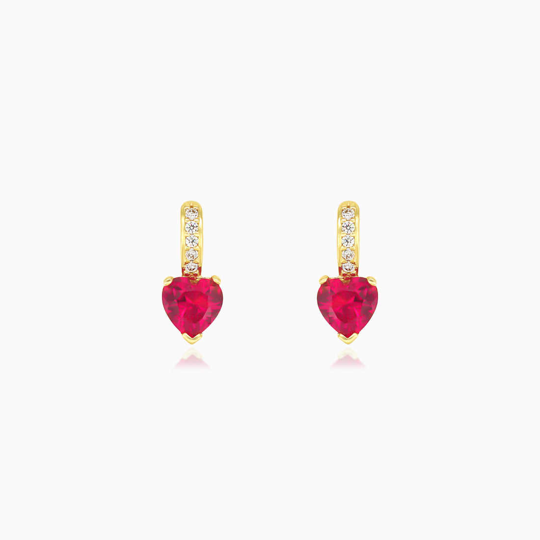 Náušnice srdce s rubínem a kubickými zirkony ve žutém zlatě
