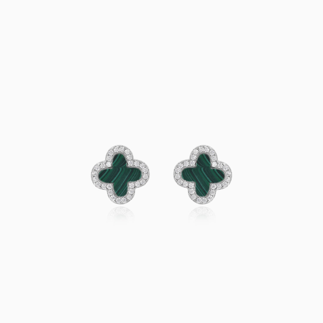 Stříbrné náušnice se zeleným achátem ve tvaru čtyřlístku