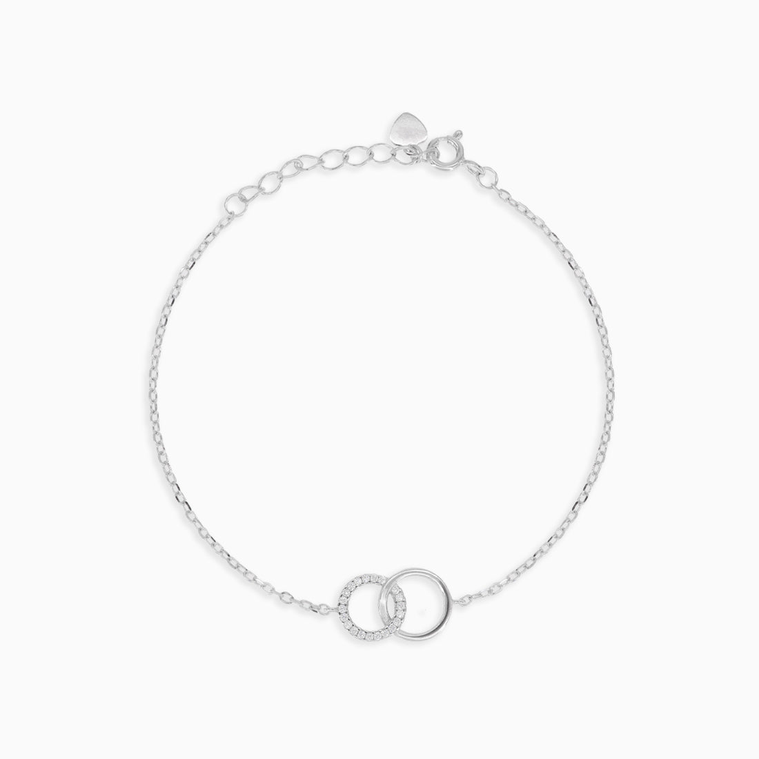 Tento stříbrný řetízkový náramek má dva elegantní kruhy zdobené třpytivými kulatými drobně broušenými zirkony. Jeho elegantní design doplňuje bezpečné zapínání na pružinový kroužek, takže je stylovým a univerzálním doplňkem pro každou příležitost.