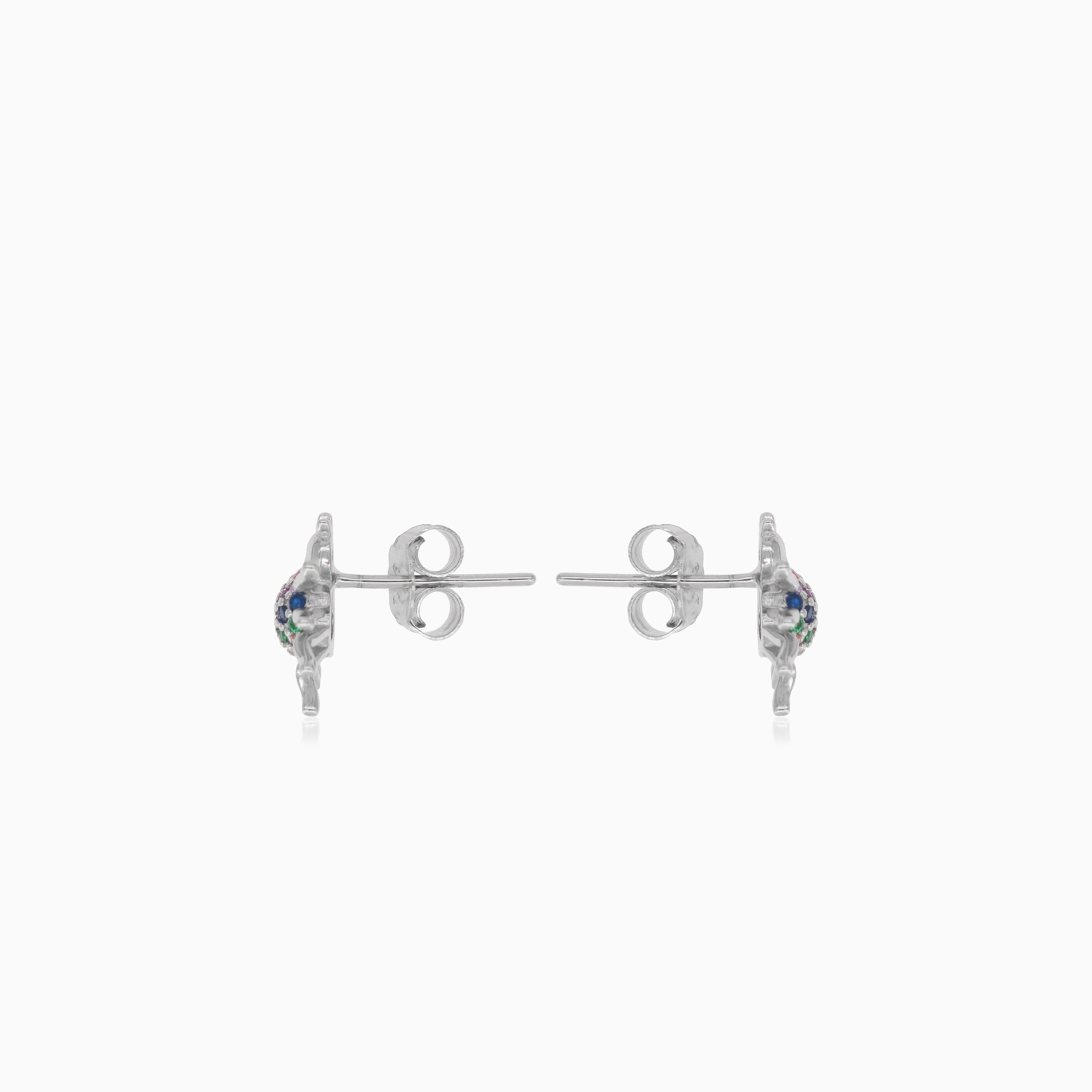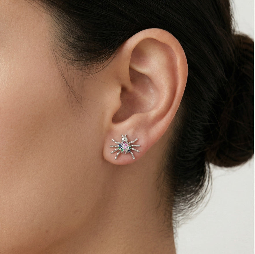 Tyto stříbrné náušnice ve tvaru pavouka jsou hravým doplňkem každé sbírky šperků a jsou osazeny kulatými syntetickými safíry, smaragdy, rubíny a citríny s jemným stupňovitým brusem. Složitý design je oživen zářivými různobarevnými kameny, zatímco puzetové zapínání zajišťuje pohodlné a bezpečné nošení po celý den.