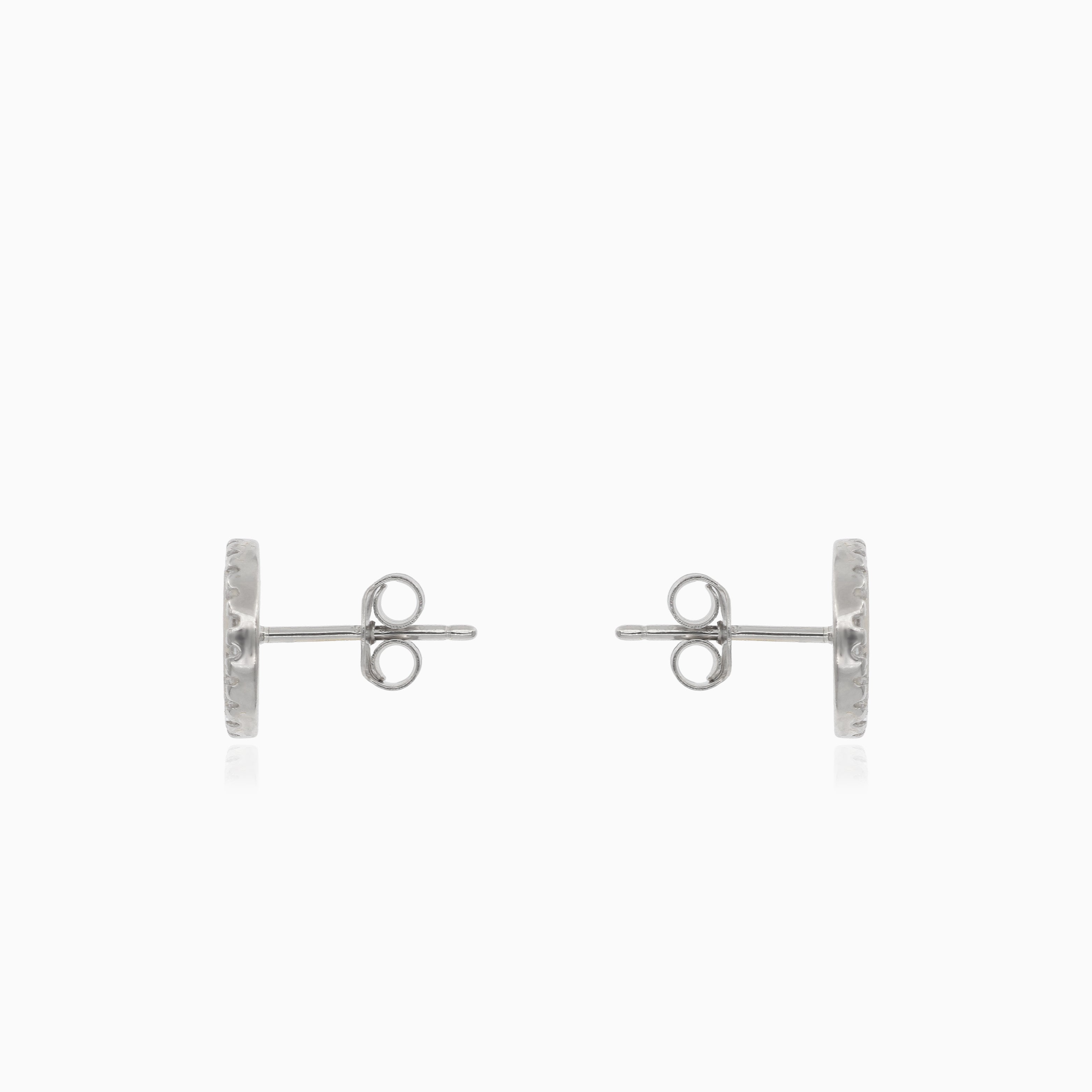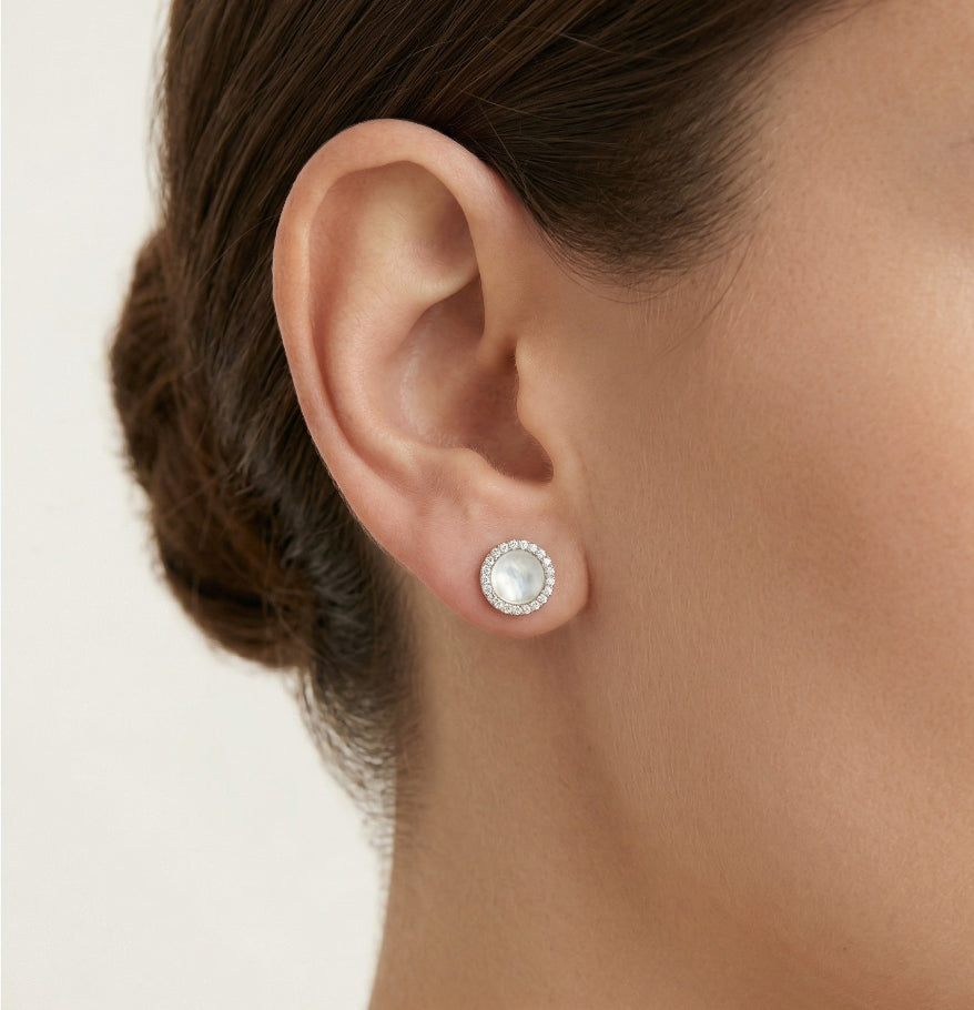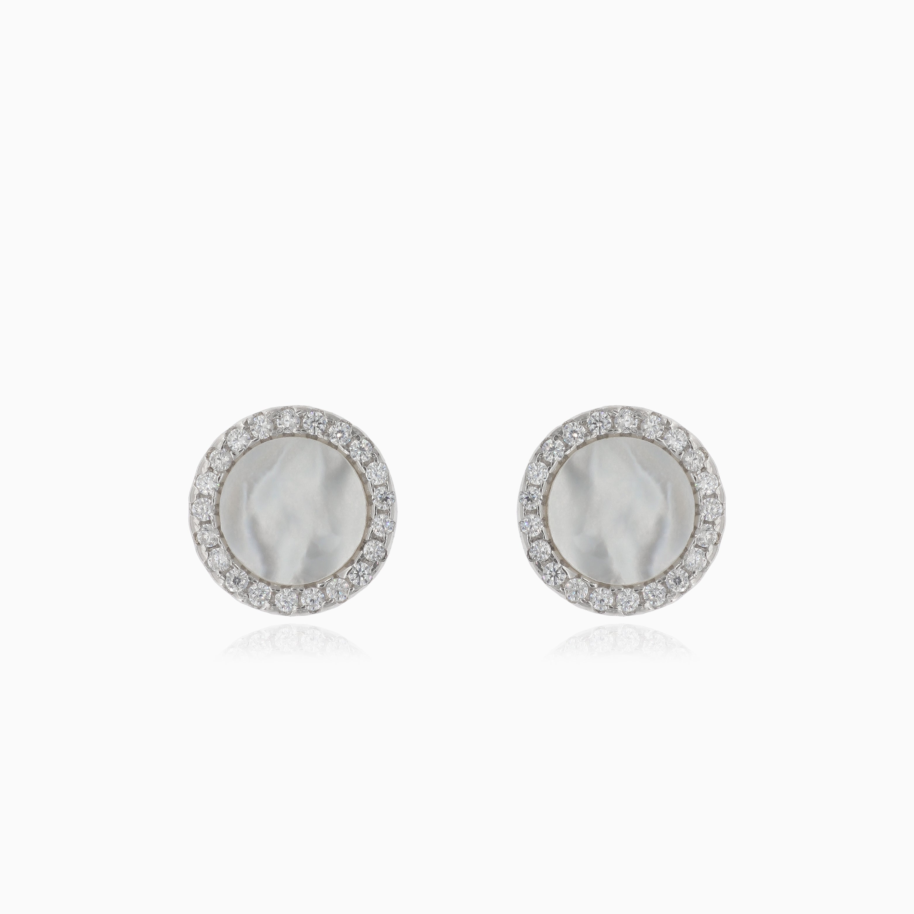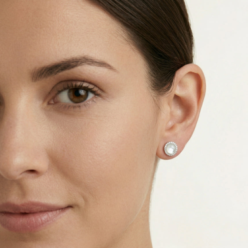 Ozdobte své uši těmito nádhernými stříbrnými kulatými náušnicemi s lesklými perlami a třpytivými zirkony pro nadčasový a elegantní vzhled.