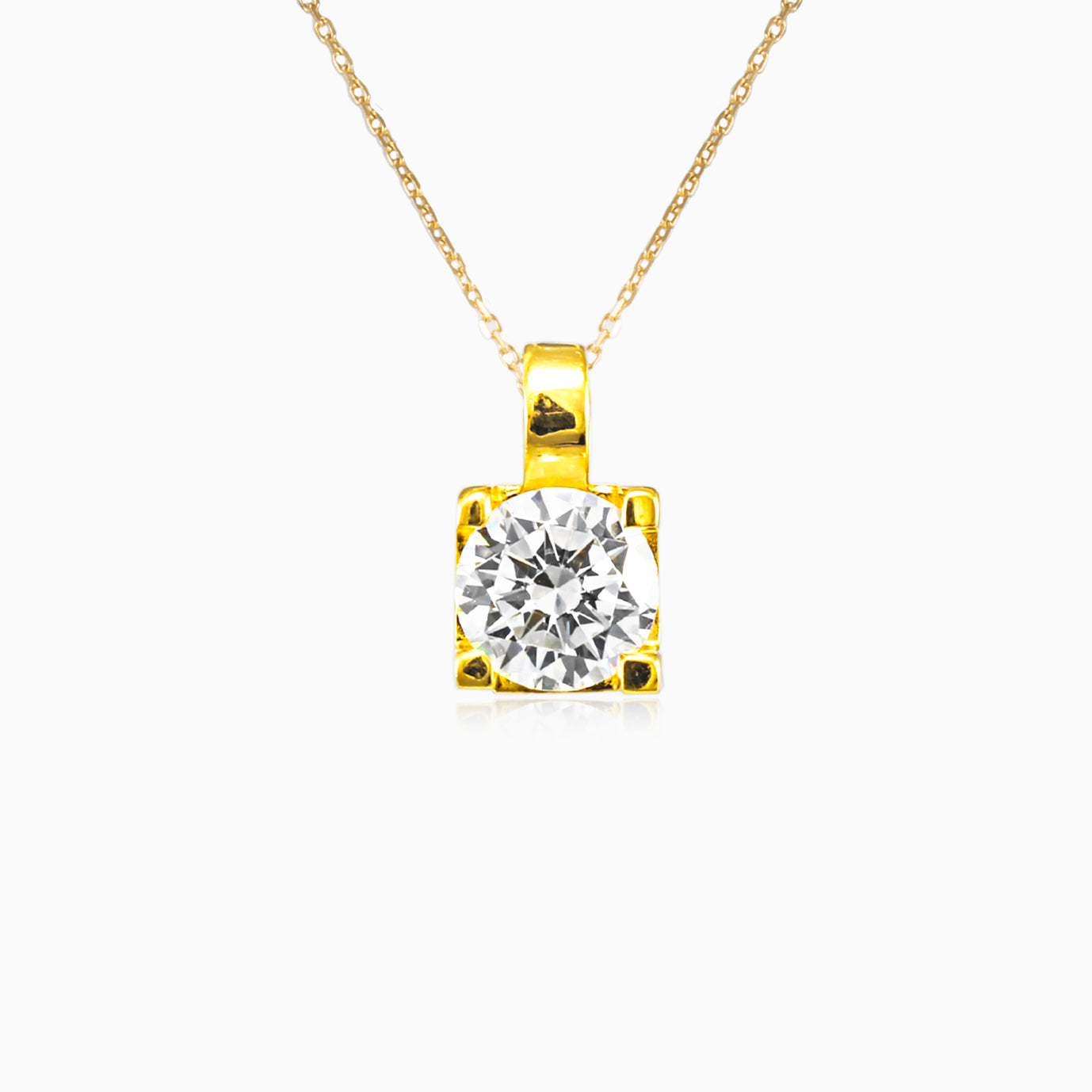 Tento elegantní přívěsek zdobí jeden kubický zirkon vsazený do žlutého zlata 14k s čtyřmi krapnami, které kámen pevně ochraňují. Design přívěsku je čtvercově střižený, což mu dodává vybraný a sofistikovaný vzhled, ačkoliv kámen má briliantový řez. Kombinace třpytivého kubického zirkonu a lesklého žlutého zlata vytváří ohromující kousek šperků vhodný na jakoukoliv příležitost. Jeho nadčasová elegance a precizní zpracování činí tento přívěsek ceněným kouskem do jakékoliv sbírky.