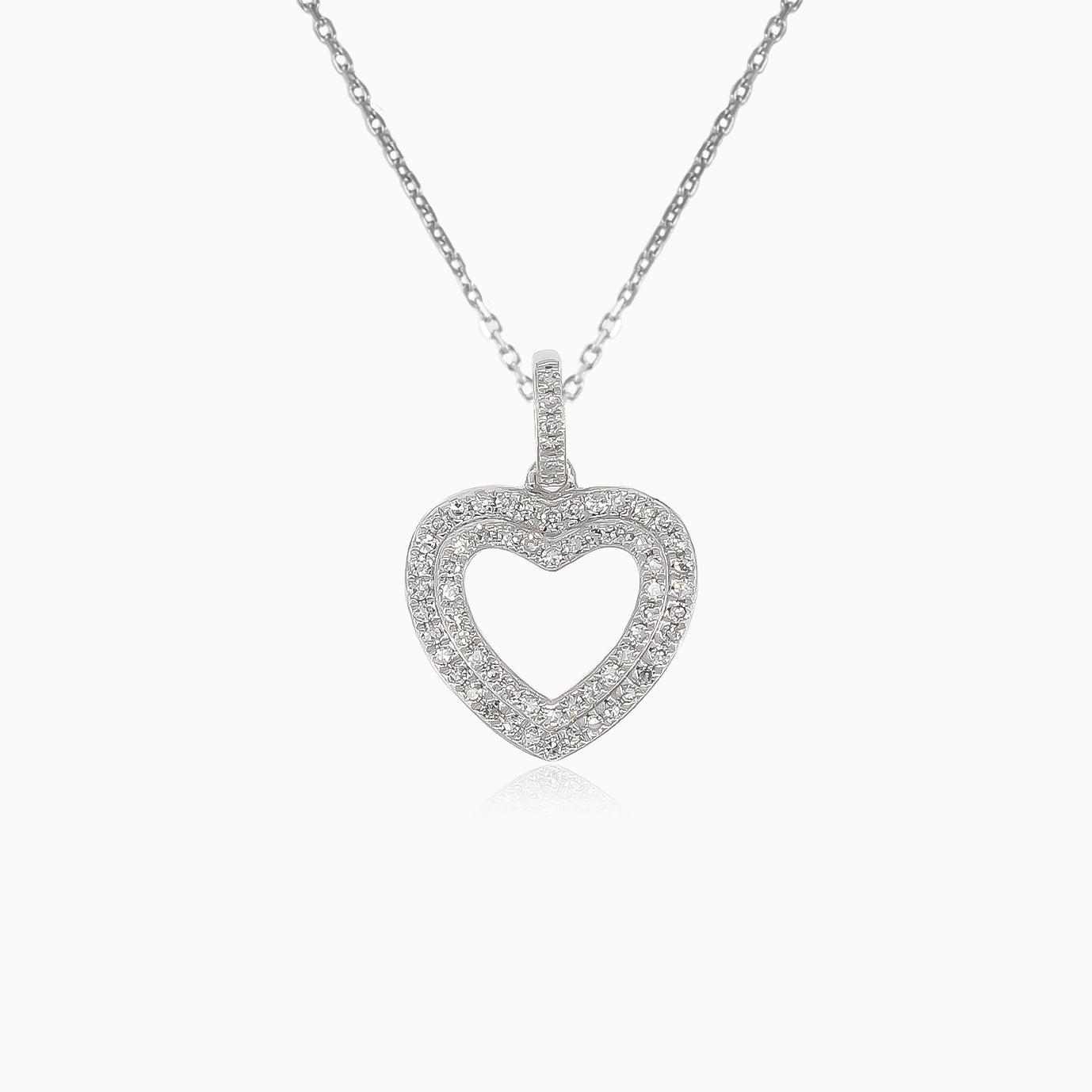 Rozzařte svůj dekolt tímto úžasným dámským přívěskem. Tento přívěsek, vyrobený ze 14kt bílého zlata a zdobený kulatými jemnými stupňovitě broušenými diamanty v třpytivém designu srdce, dodá každému oblečení nádech elegance a půvabu.