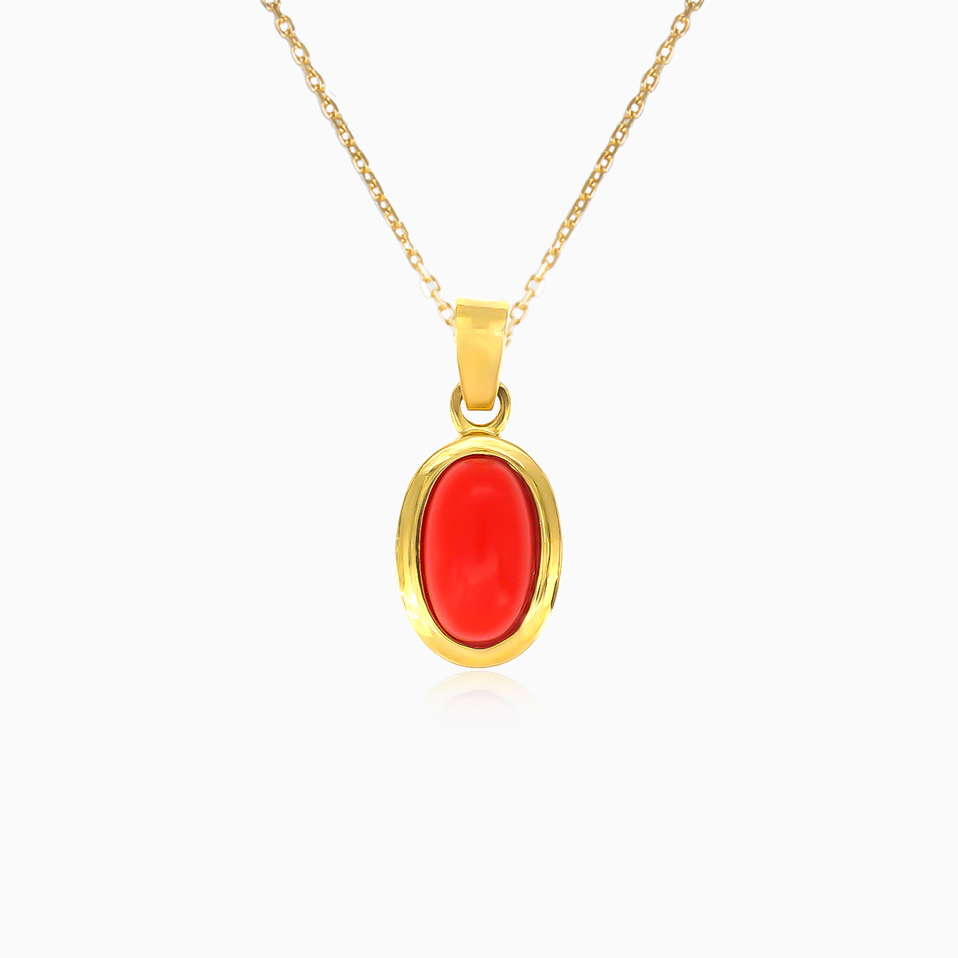 Tento dámský přívěsek ze 14kt žlutého zlata se zářivým oválným červeným korálem vyzařuje teplo - podmanivý a elegantní doplněk.