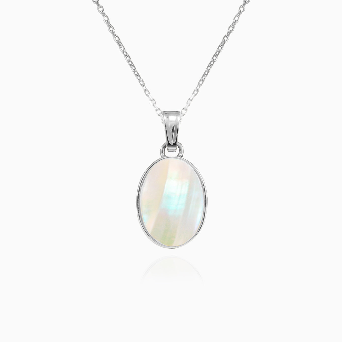 Tyto elegantní dámské přívěsky jsou vyrobeny ze 14kt bílého zlata a mají oválné bílé perleťové kameny v bezpečných rámečcích - ideální pro nadčasovou sofistikovanost.