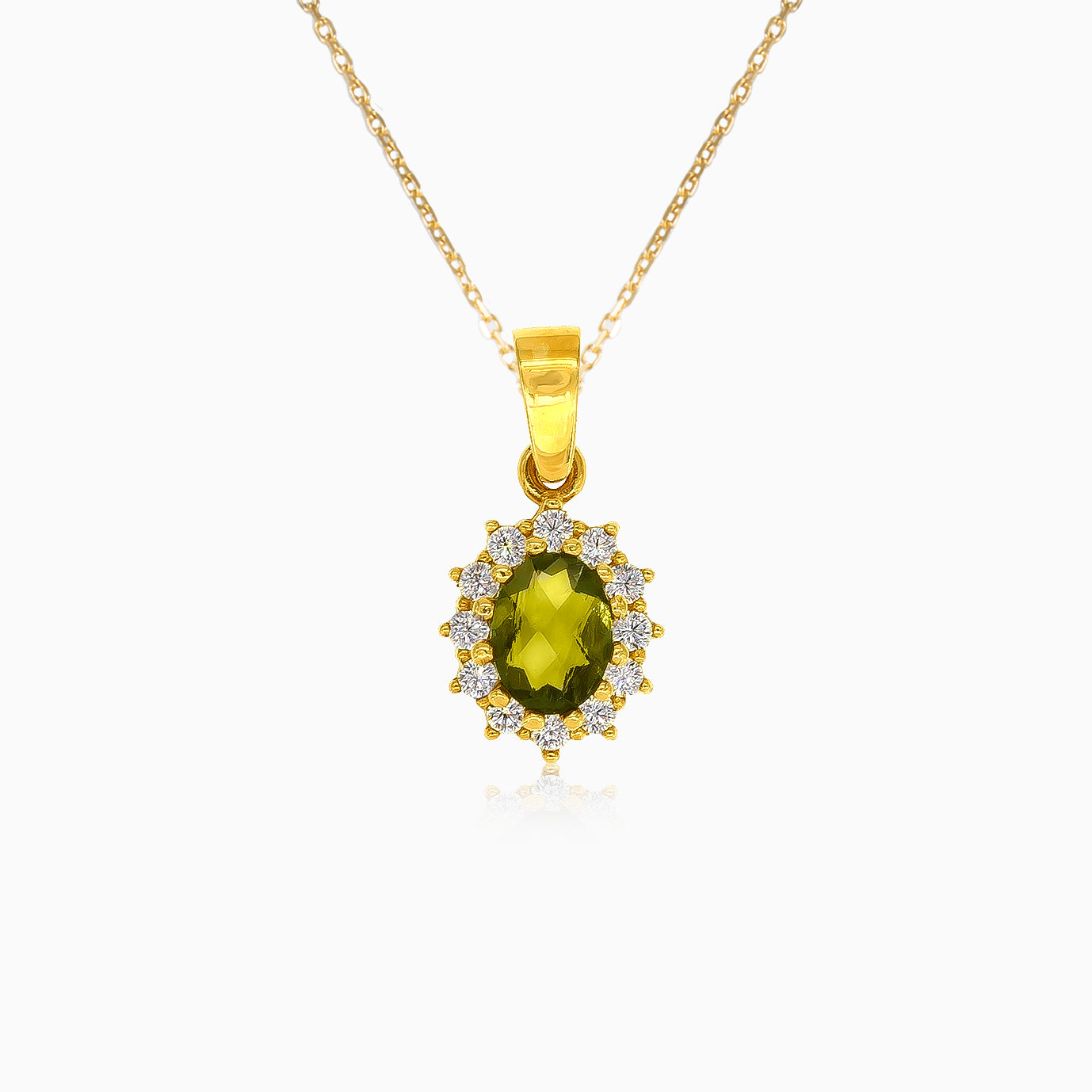 Vyzdvihněte svůj styl s naším nádherným přívěskem ze 14karátového žlutého zlata, který zdobí 12 i 3 hroty. Středová část se pyšní podmanivou kombinací moldavitu a kubických zirkonů, která vyzařuje královský šarm a upoutává pozornost. Tento jedinečný šperk je důkazem vytříbené elegance a sofistikovaného řemeslného zpracování.