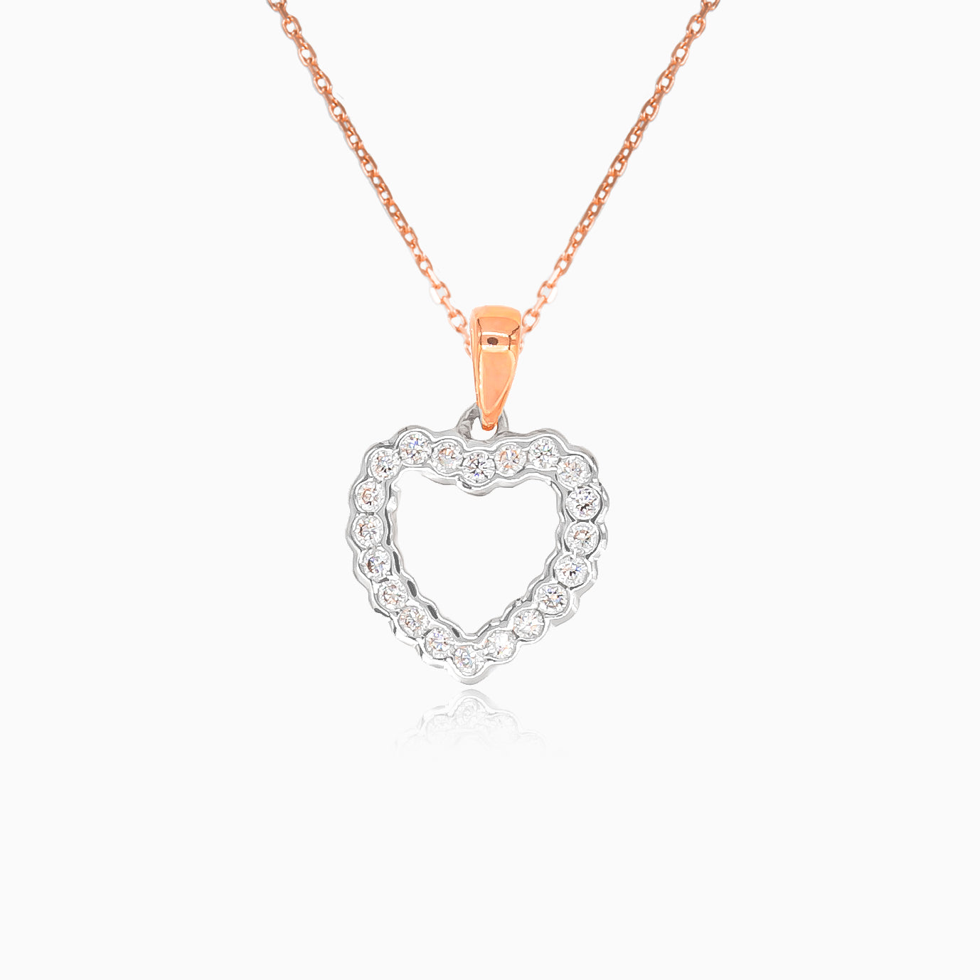 Tento elegantní přívěsek spojuje něhu a romantiku v jemném srdíčkovém tvaru. Vyrobený ze 14k růžového zlata s kulatým diamantem SI1 H 0,17 ct v precizním rámečku. Hřejivý odstín růžového zlata dodává šperku jemnost a nadčasovou eleganci.