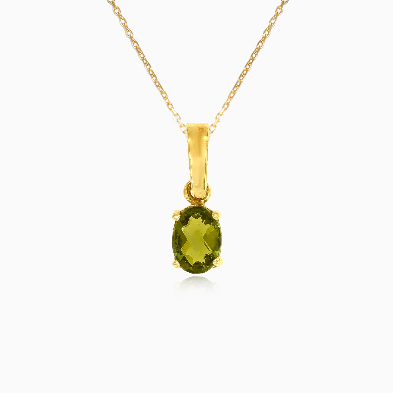 Vylepšete svůj styl tímto úžasným přívěskem ze žlutého 14kt zlata s podmanivým kamenem vltavínem v elegantním oválném jemném stupňovitém výbrusu. Kámen je bezpečně uchycen pomocí jemného čtyřsloupkového zasazení, které podtrhuje jeho přirozenou krásu a vytváří nadčasový šperk, v němž se bez námahy snoubí luxus a jedinečnost.