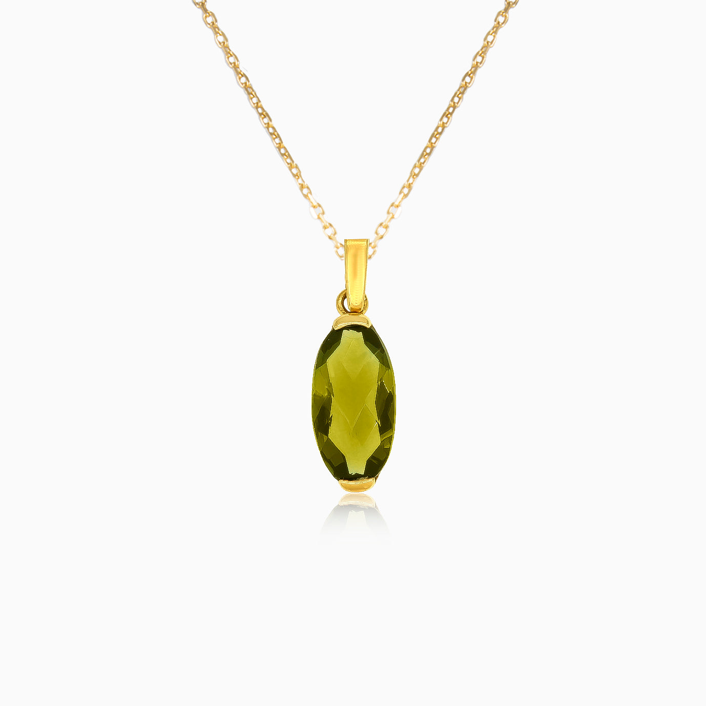 Přívěsek ze žlutého zlata s dlouhým kamenem vltavín v oválném výbrusu