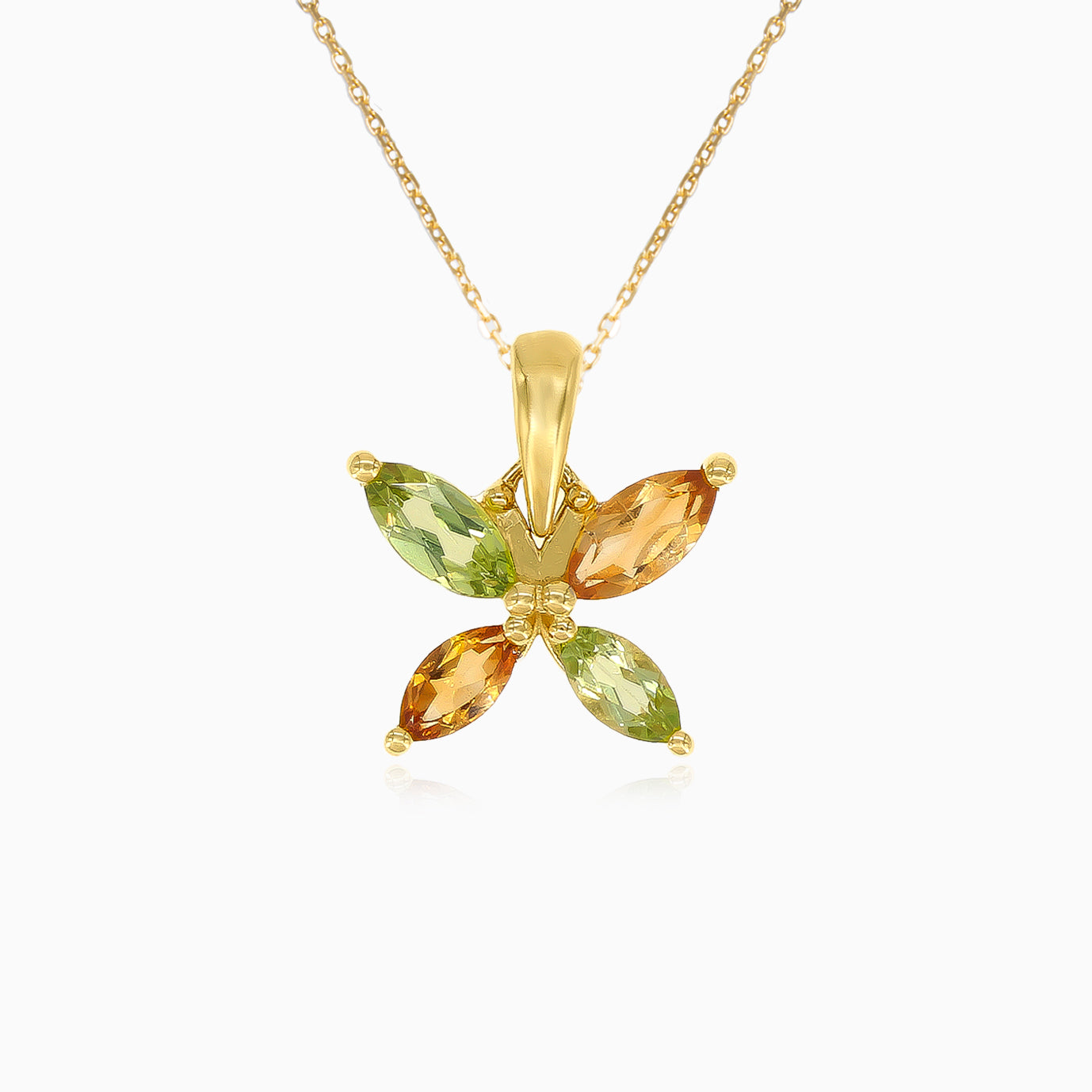 Vyzdvihněte svůj styl s naším nádherným dámským přívěskem s citrínem a peridotem v markýzovém jemném stupňovitém výbrusu, jemně zasazeným do 14kt žlutého zlata s osazením záhybem. Dodejte tímto zářivým šperkem každému outfitu nádech elegance.