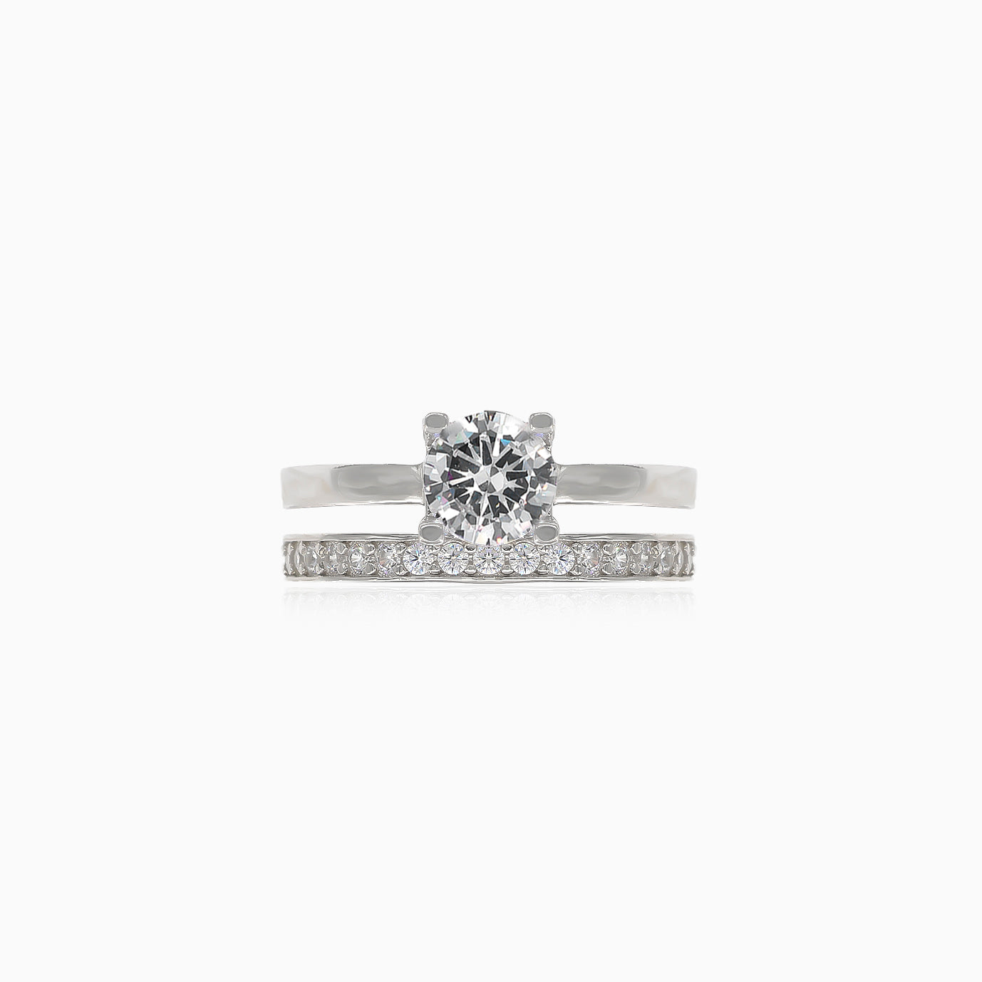 https://v2.langify-app.com/products/40489305#Objevte náš úžasný dámský stříbrný prsten s dvojitým designem zdobeným kulatými jemnými stupňovitě broušenými zirkony v osazení se zářezem, který nabízí nadčasovou eleganci a jedinečný styl pro každou příležitost.