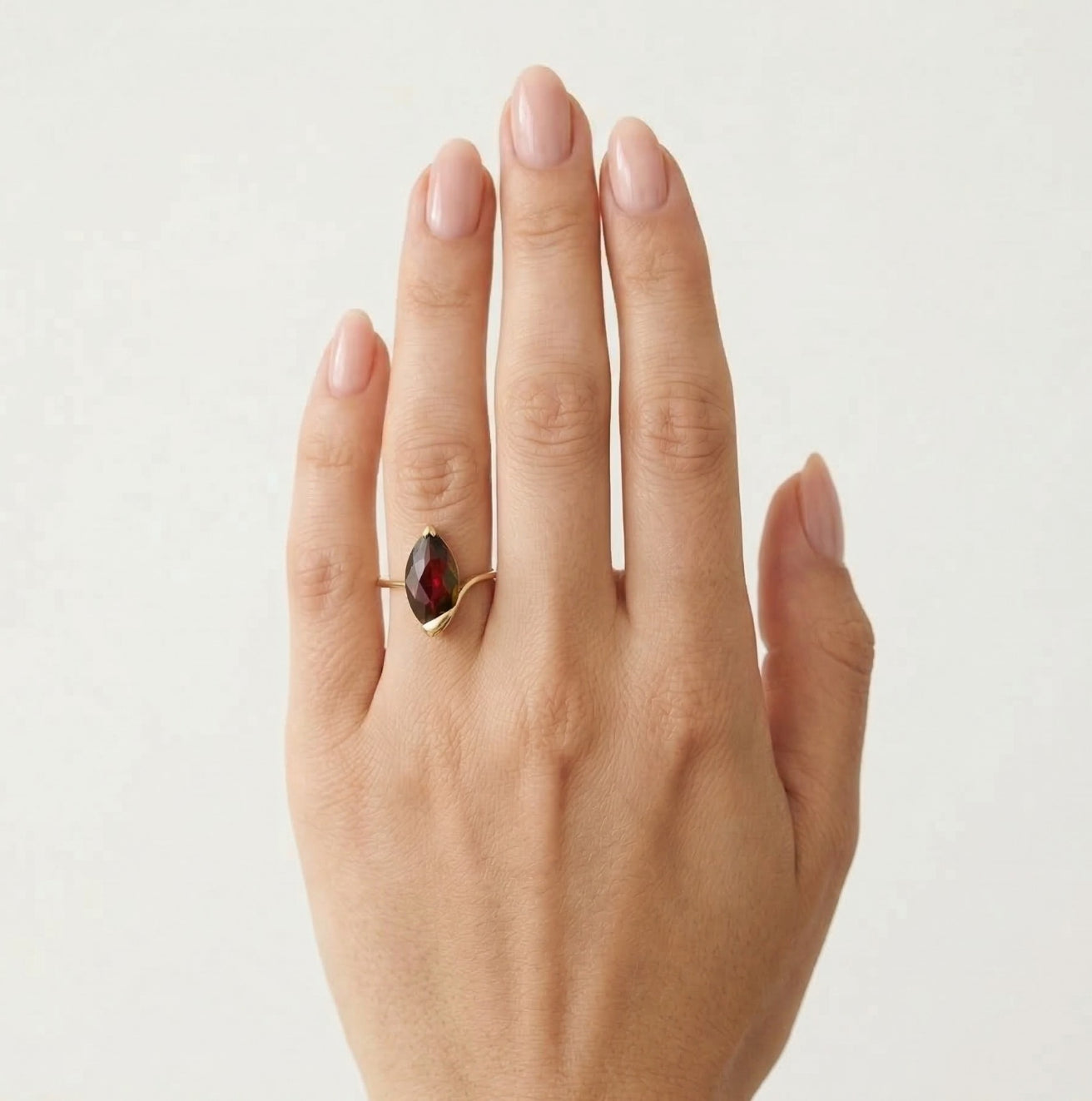 Zlatý prsten s granátem markýzového tvaru