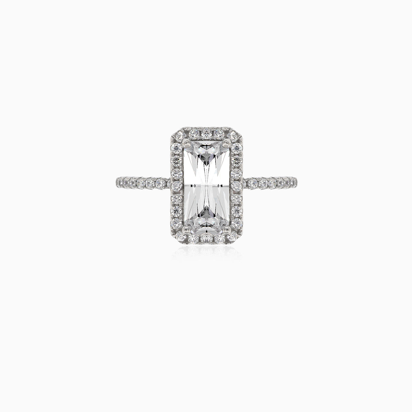 V tomto nádherném dámském stříbrném prstenu zdobeném kubickými zirkony kulatého tvaru s jemným stupňovitým výbrusem a obdélníkovým zářivým výbrusem, které jsou zasazeny do elegantního a královského vzhledu, se budete cítit jako královna.