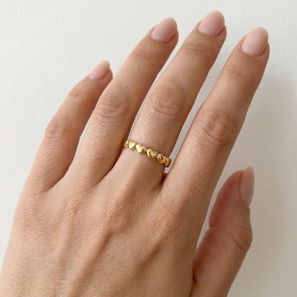 Krásný prsten ze žlutého zlata ve tvaru srdcí