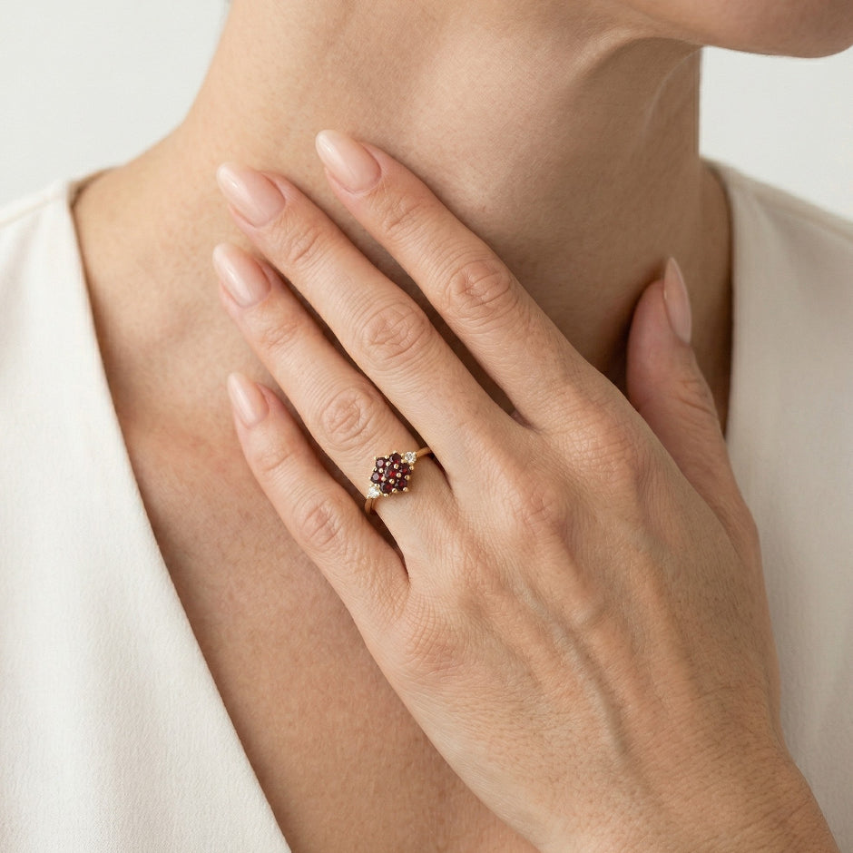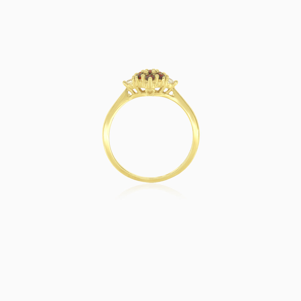 Prsten s granátovým květem ze žlutého zlata