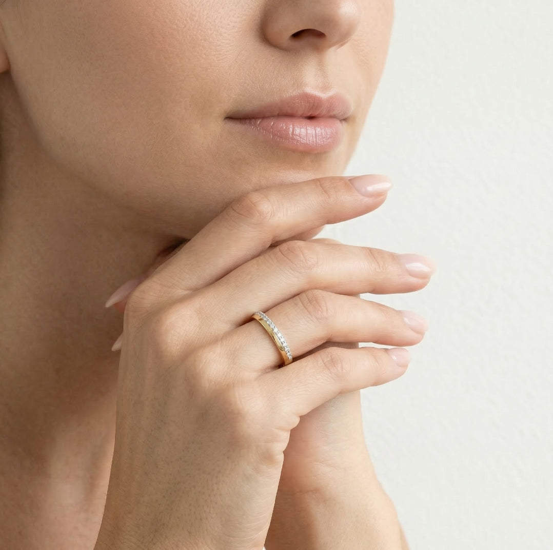 Rozzařte svůj styl zářivým dámským prstenem ze 14kt žlutého zlata s kulatými zirkony pro nadčasovou eleganci.