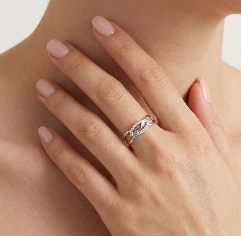 Tento okouzlující design zahrnuje 14kt bílý zlatý prsten zdobený třpytivými kubickými zirkony, které dodávají dotek elegance každému outfitu.