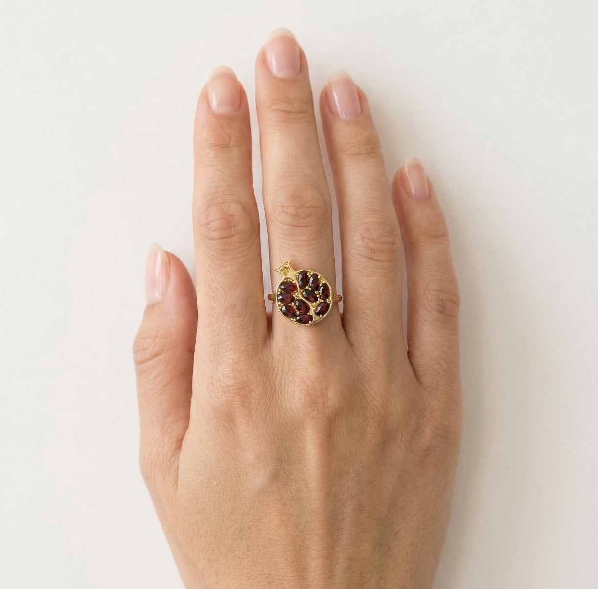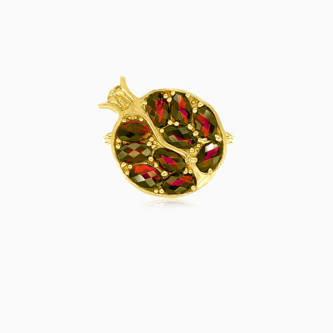Zlatý prsten s granatem ve tvaru granátového jablka