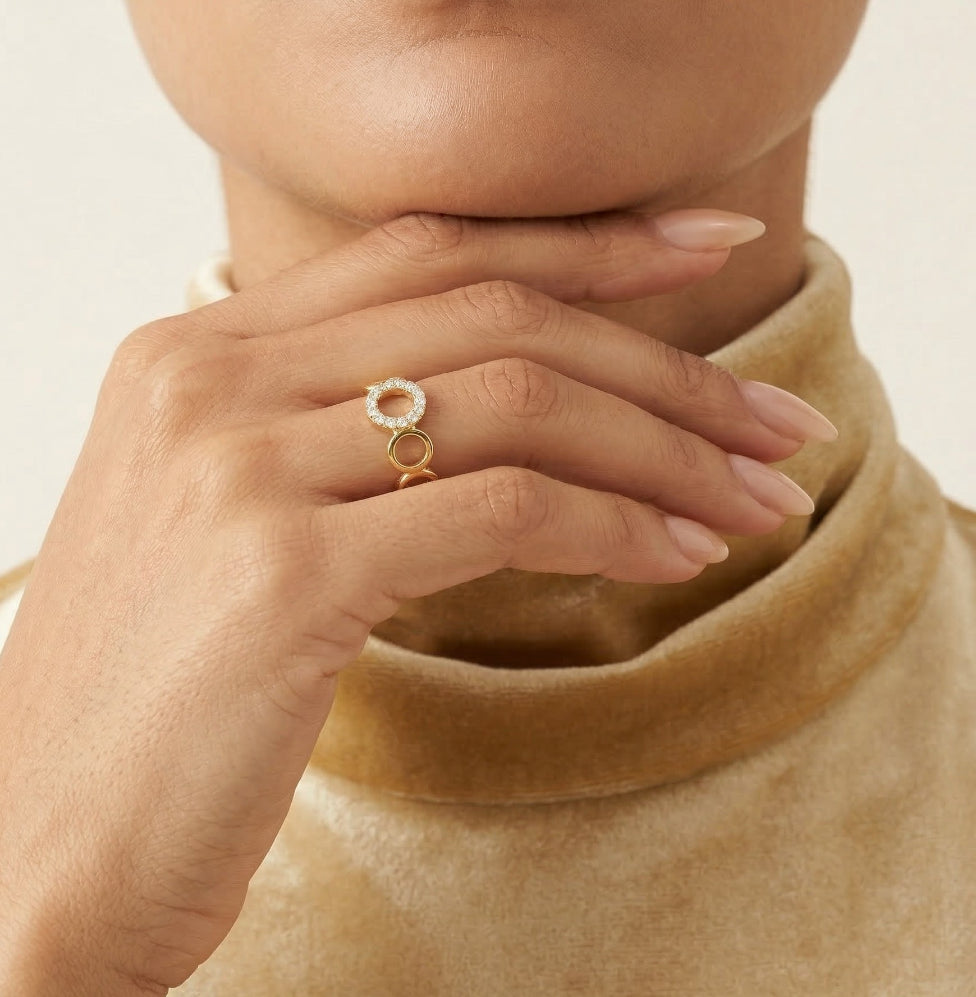 Zlatý prsten s lesklými kubickými zirkony