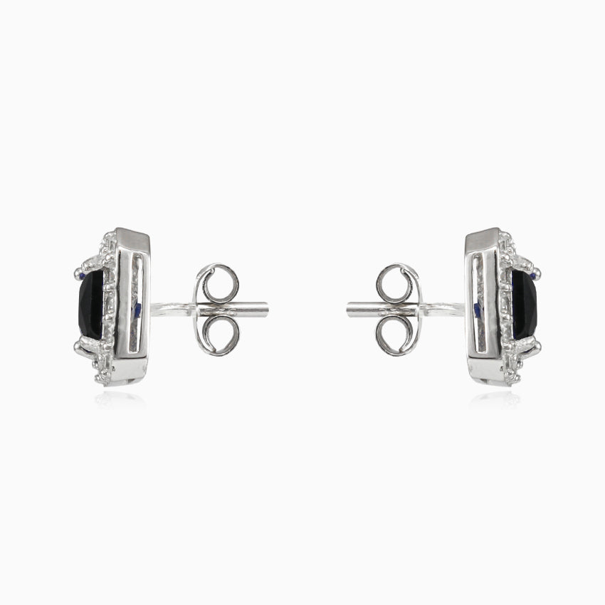 Elegantní čtvercové černé onyxové náušnice ze sterlingového stříbra v kombinaci s lunetou z kubické zirkonie.