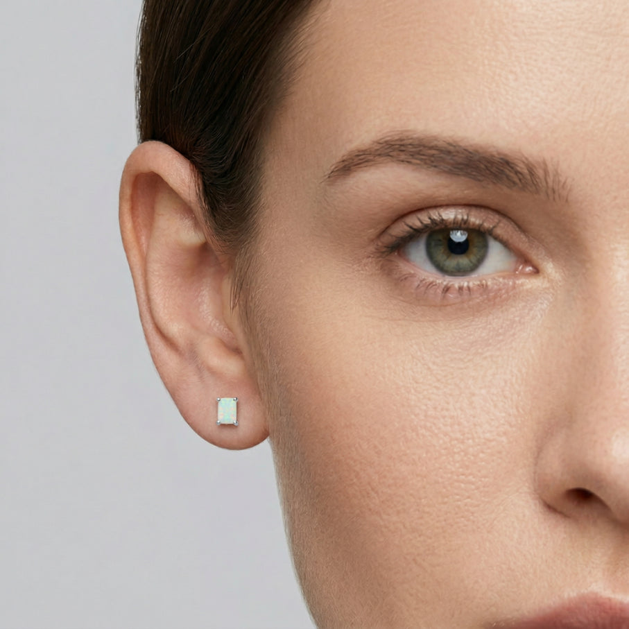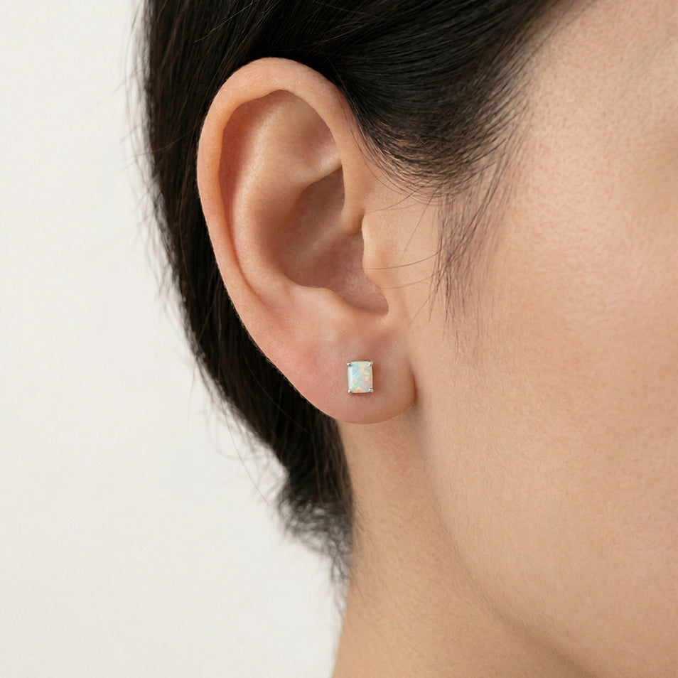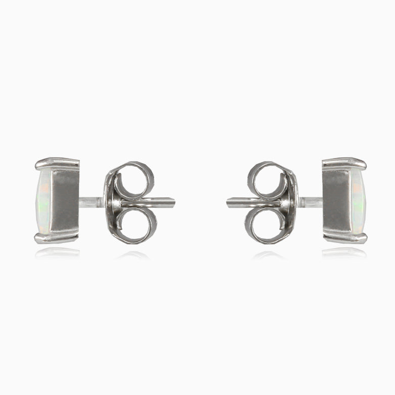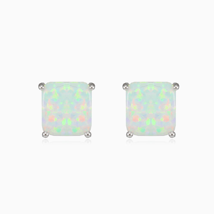 Čtvercové bílé opálové náušnice vyrobené ze sterlingového stříbra.