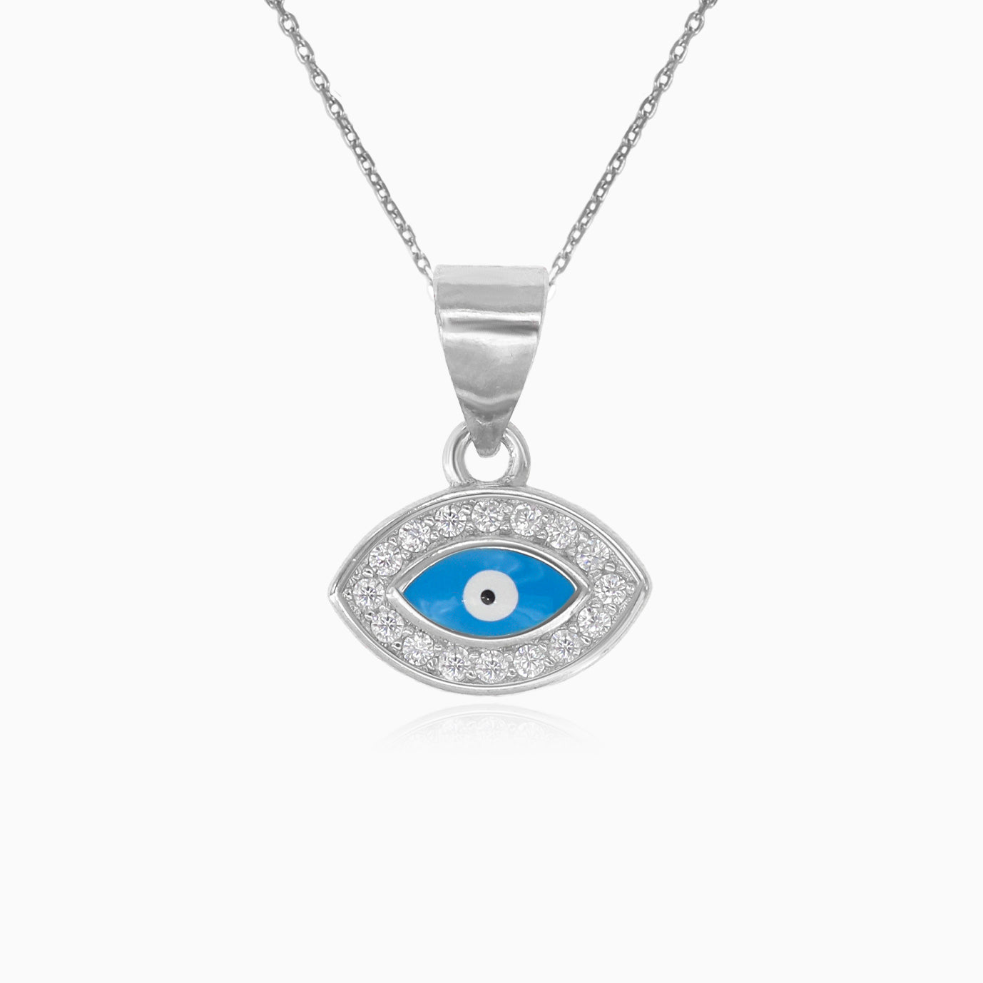 Unisex stříbrný přívěsek s výrazným vzorem oka proroka v zářivém smaltu. Přívěsek obklopují kulaté zirkony jemného stupňovitého brusu, bezpečně zasazené do zářezů. Tento přívěsek, který je symbolem ochrany a stylu, se skvěle hodí ke každodennímu nošení nebo jako dárek.