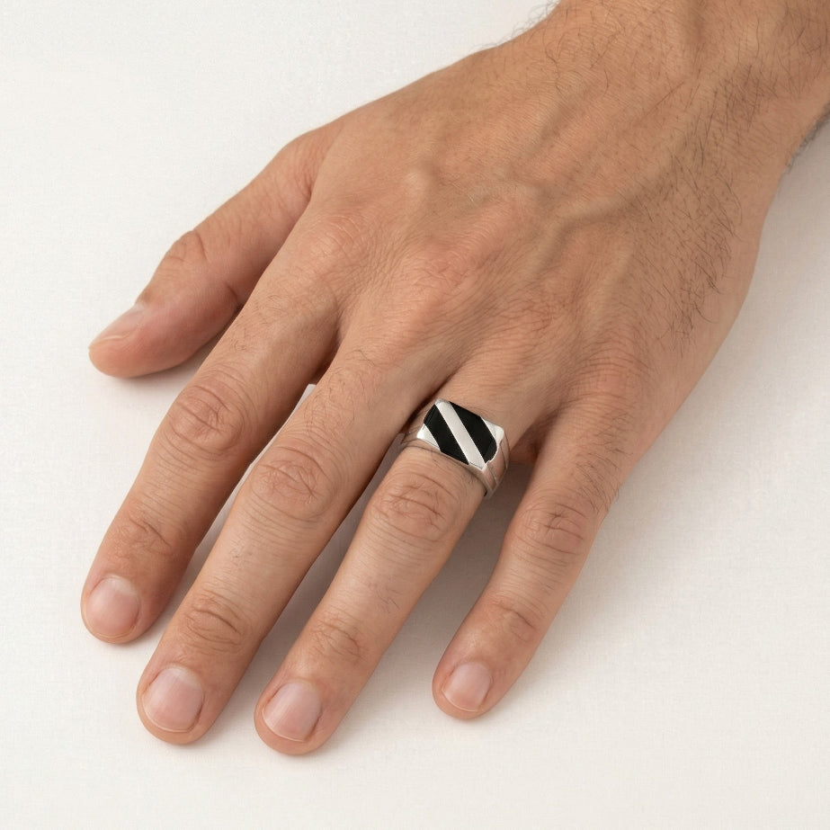 Pánský prsten ze stříbra se smaltem, diagonální design