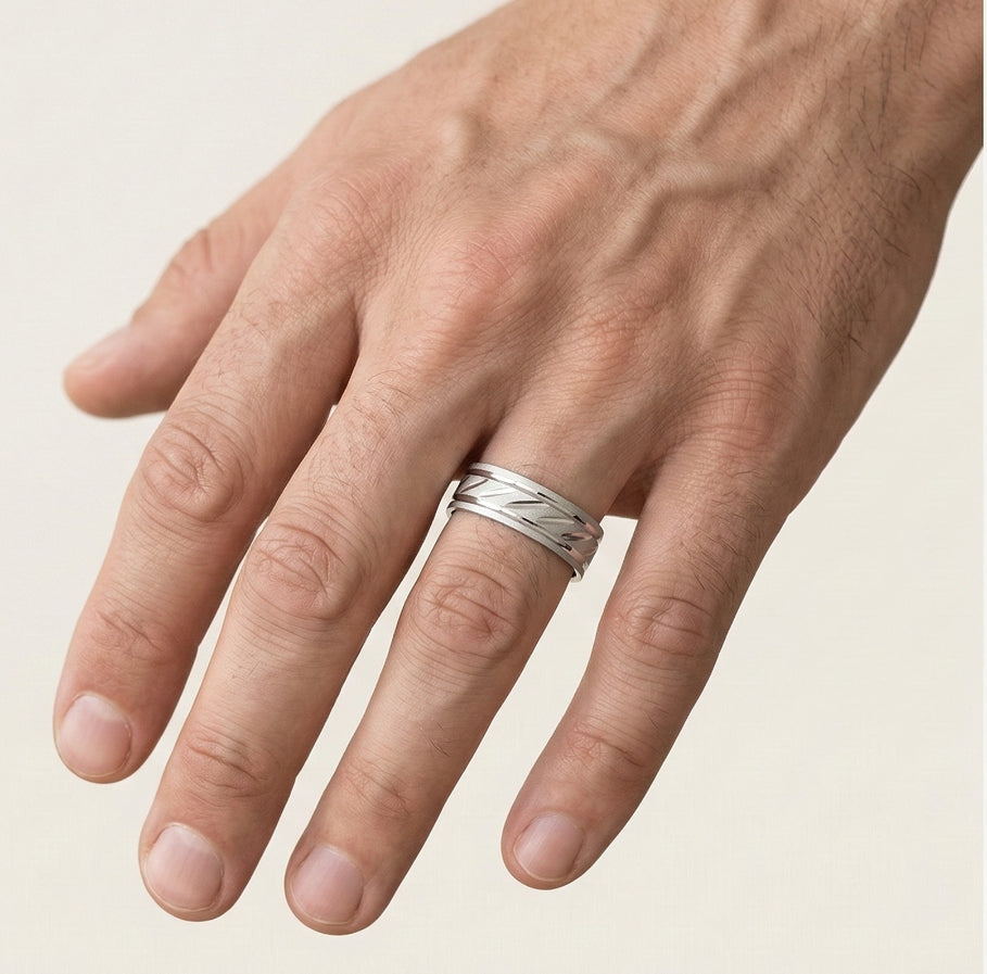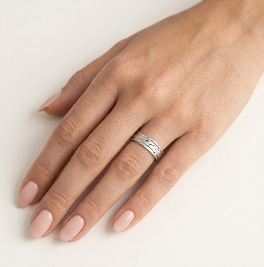 Tento elegantní snubní prsten pro ženy a muže je vyroben ze 14karátového bílého zlata a kombinuje vysoce leštěnou povrchovou úpravu s matným třpytivým broušením pro jedinečný vzhled. Prsten o tloušťce 7 mm nabízí pohodlné nošení a kombinuje klasický design s moderním nádechem, což je ideální pro ty, kteří ocení jemnou sofistikovanost.