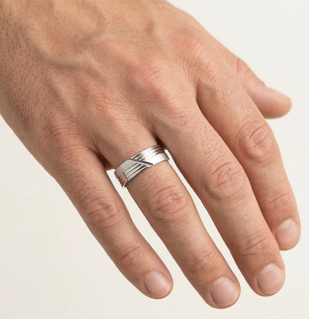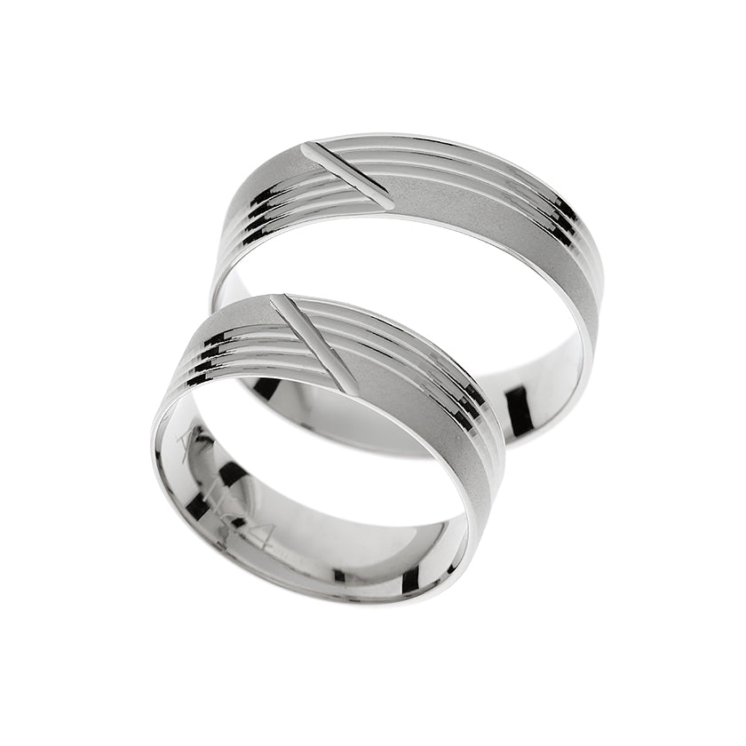 Snubní prsten z bílého zlata s lineárním gravírováním