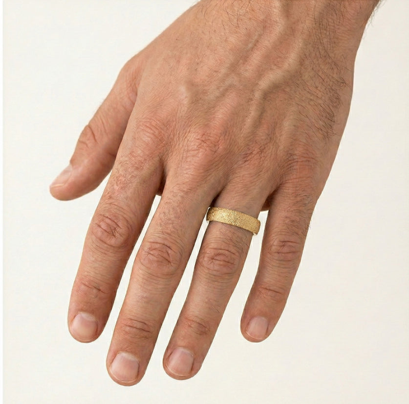 Pískované jiskřivé snubní prsteny ze žlutého zlata