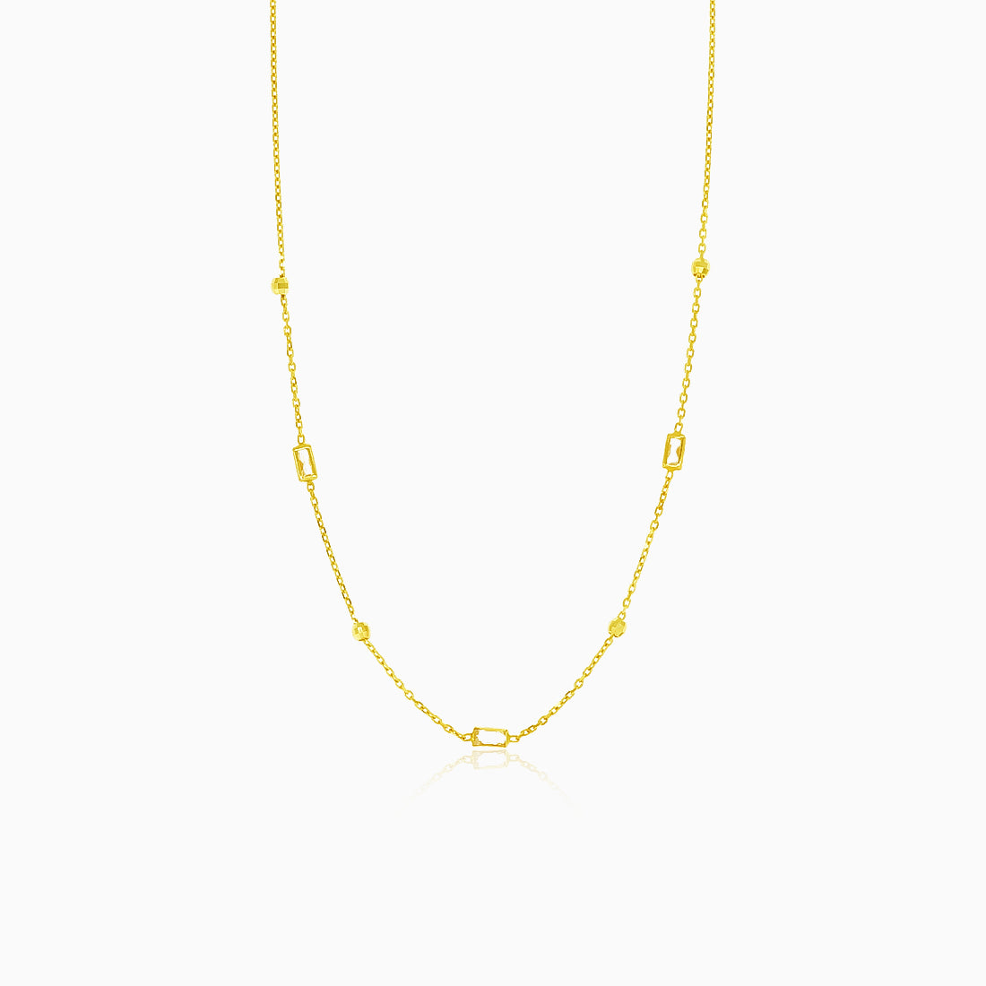Zlatý náhrdelník s kuličkami a obdélníkovými zirkony