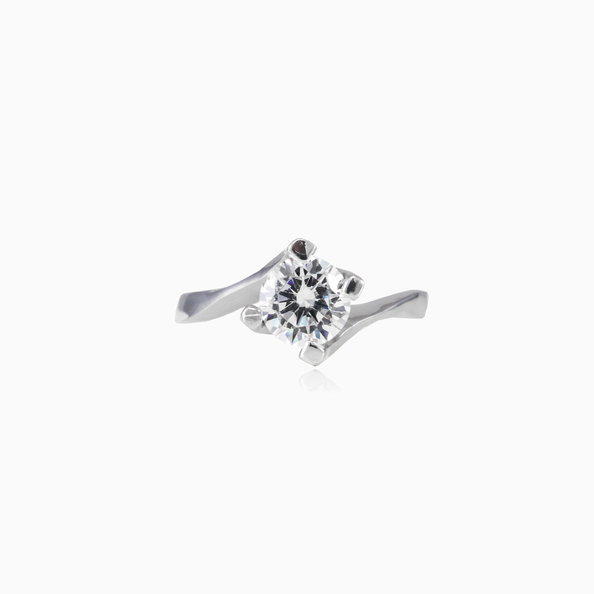 Vysoký kroucený prsten ze stříbra v kombinaci s kulatým broušeným kubickým zirkonem.