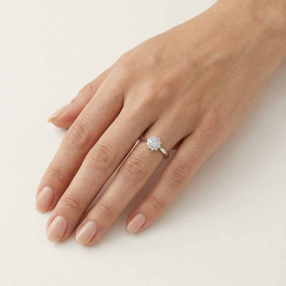 Vylepšete svůj vzhled tímto dámským stříbrným prstenem s oslnivými kubickými zirkony v kulatém jemném stupňovitém výbrusu. Třpytivé zirkony, zasazené v bezpečném zasazení, dodají každému oblečení nádech elegance a sofistikovanosti.