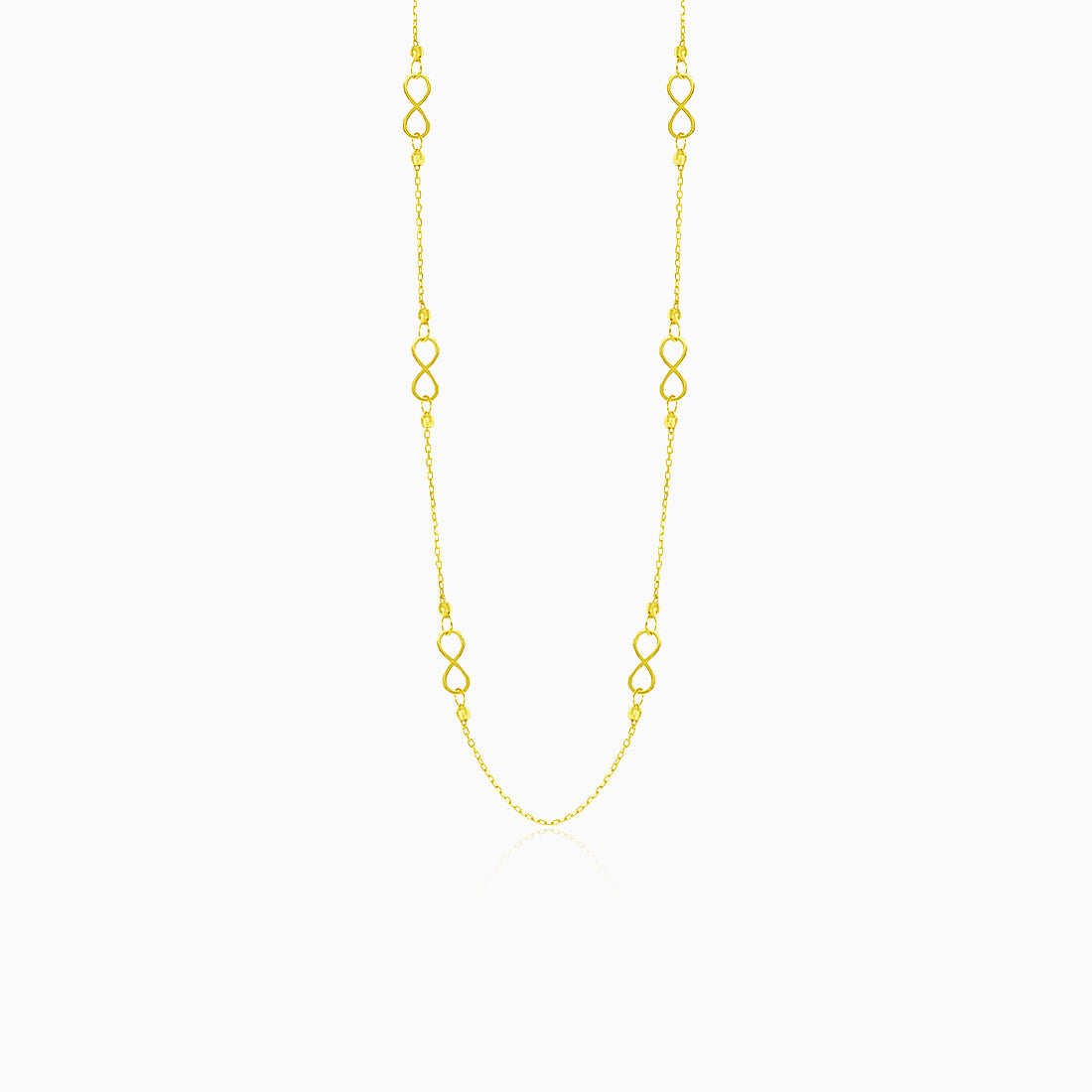 Náhrdelník vyrobený ze 14 karátového žlutého zlata s šesti ornamenty v symbolu nekonečna. Uzavírá se pomocí pružinové spony.