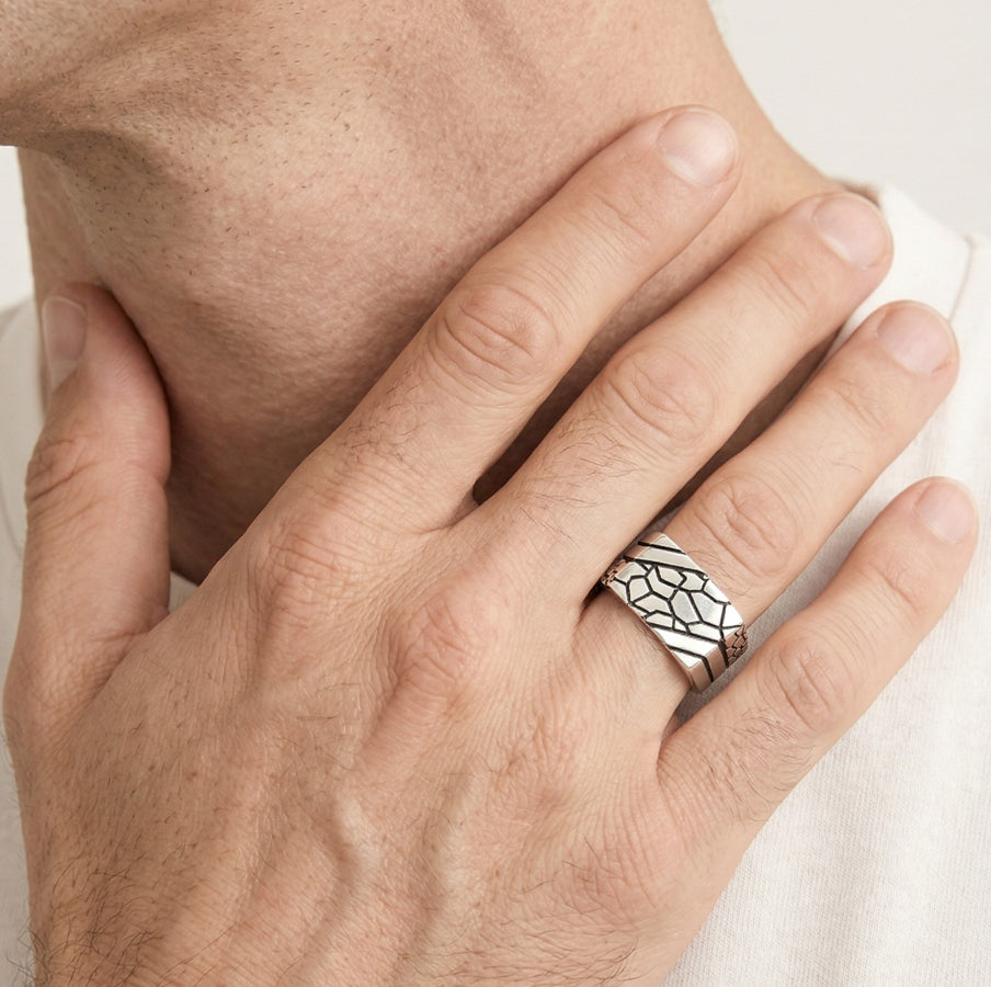 Tento stříbrný prsten s decentní liniovou úpravou kombinuje minimalistický design s precizním zpracováním. Jemné linky podtrhují osobitý styl každého muže — ideální pro každodenní nošení i výjimečné příležitosti.
