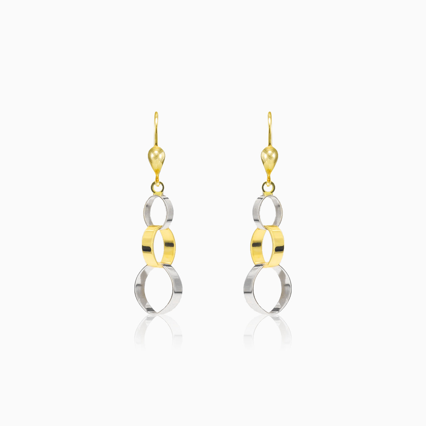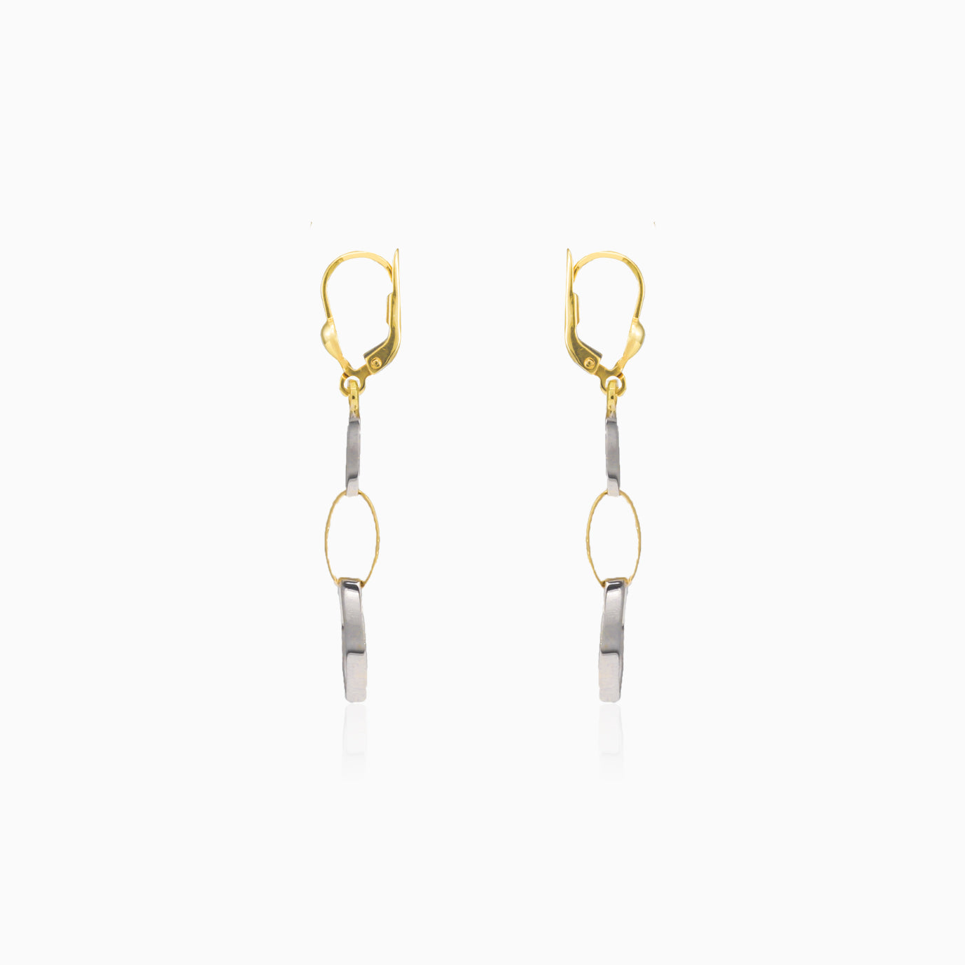 Stylové náušnice s designem připomínajícím řetěz, vyrobené z 14kt bílého a žlutého zlata.