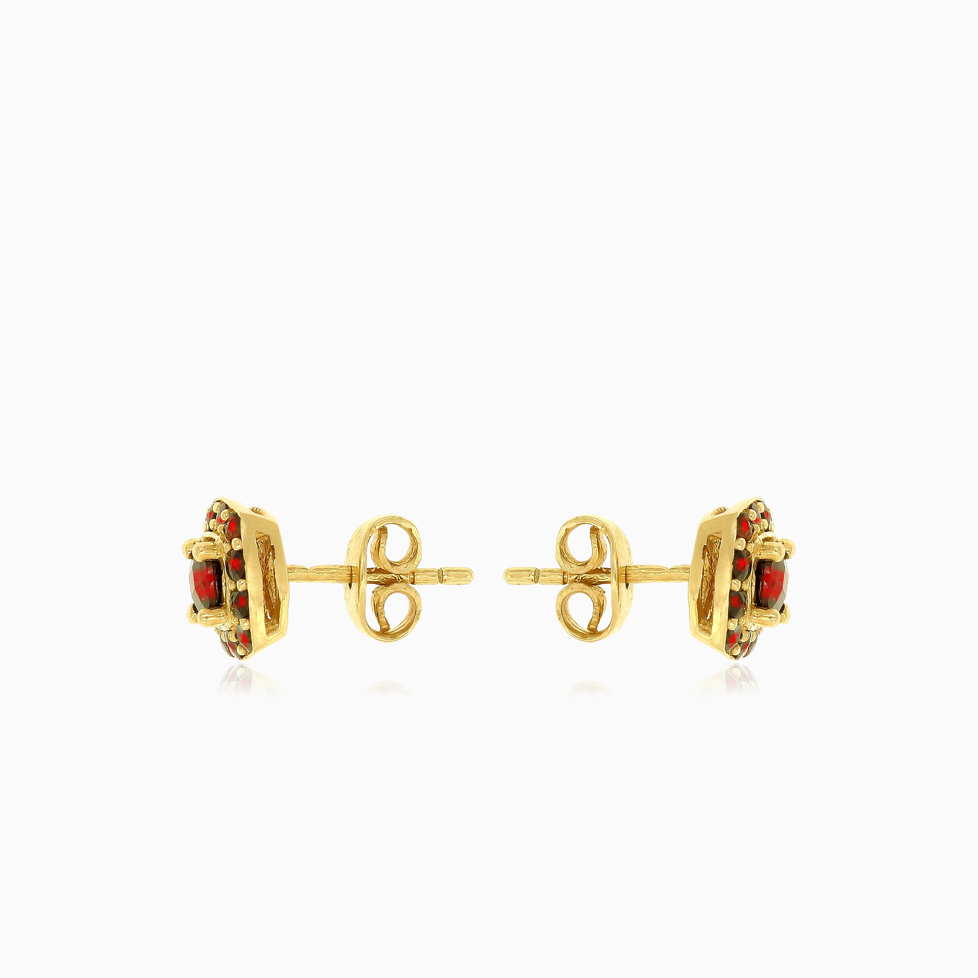 Granátové náušnice ve tvaru čtverce ve zlatě